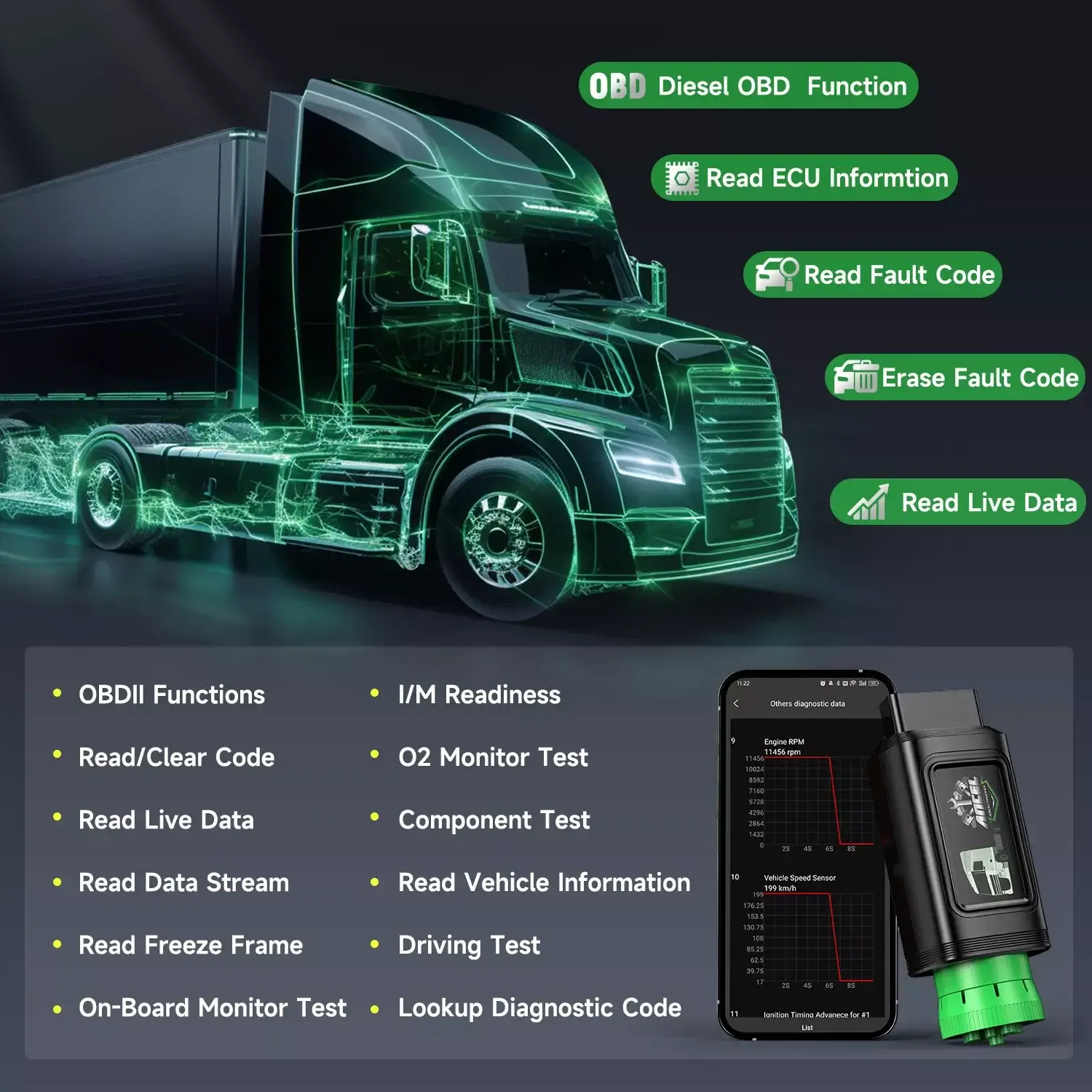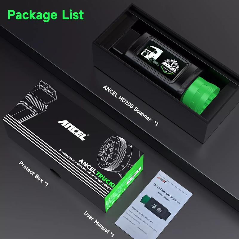 ANCEL HD200 is your ultimate roadside companion—compact, Bluetooth-enabled, and packed with pro-grade features. Diagnose engine, ABS, and transmission issues fast, adjust speed limits for Cummins/Caterpillar, and get real-time data in seconds. Built tough for any truck, it’s easy to use, requires no subscriptions, and includes lifetime free updates. One tool, all systems—stay safe, save money, and stay on the road with HD200.
