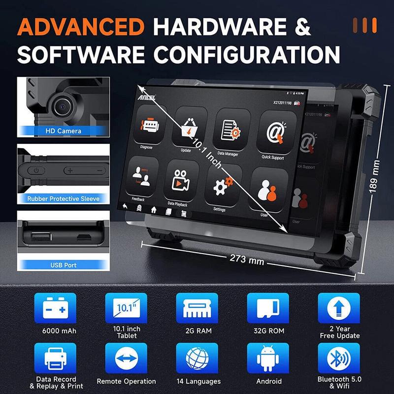 ANCEL X7 HD 10.1inch truck scanner diagnostic tool is equipped with advanced ECU coding, supports Level calibration, Idle speed learning and Adjustment, Camshaft timing control learning, Control unit adaptations, Injector Codes, Read/Write VIN, Road speed limit optional vehicle speed set, etc... PLEASE NOTE that ECU codes are not compatible with all vehicles, please send us your VIN# to check vehicle compatibility.