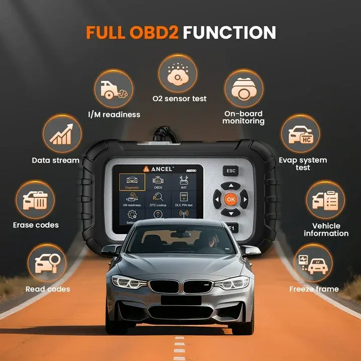 ANCEL is fully equipped with all 10 OBD2 test modes, includes read & clear codes, freeze frame, live data, I/M readiness, O2 Sensor, etc. Whether you’re dealing with a check engine light or performing emissions prep, this tool delivers the insights you need.