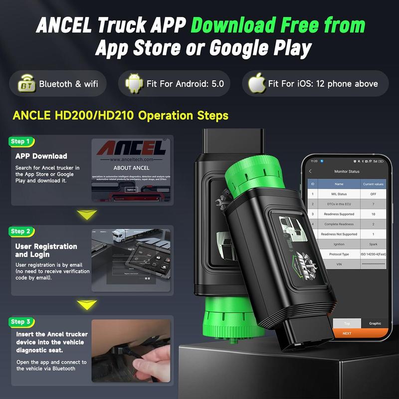 Sync Faster Than Saying “Troublecode!” The Upgraded Bluetooth Connects in 2 Seconds via the ANCEL TRUCKER App. Streamline Diagnostics, Catch Issues Instantly, and Prevent Breakdowns—Zero Downtime, Maximum Productivity.