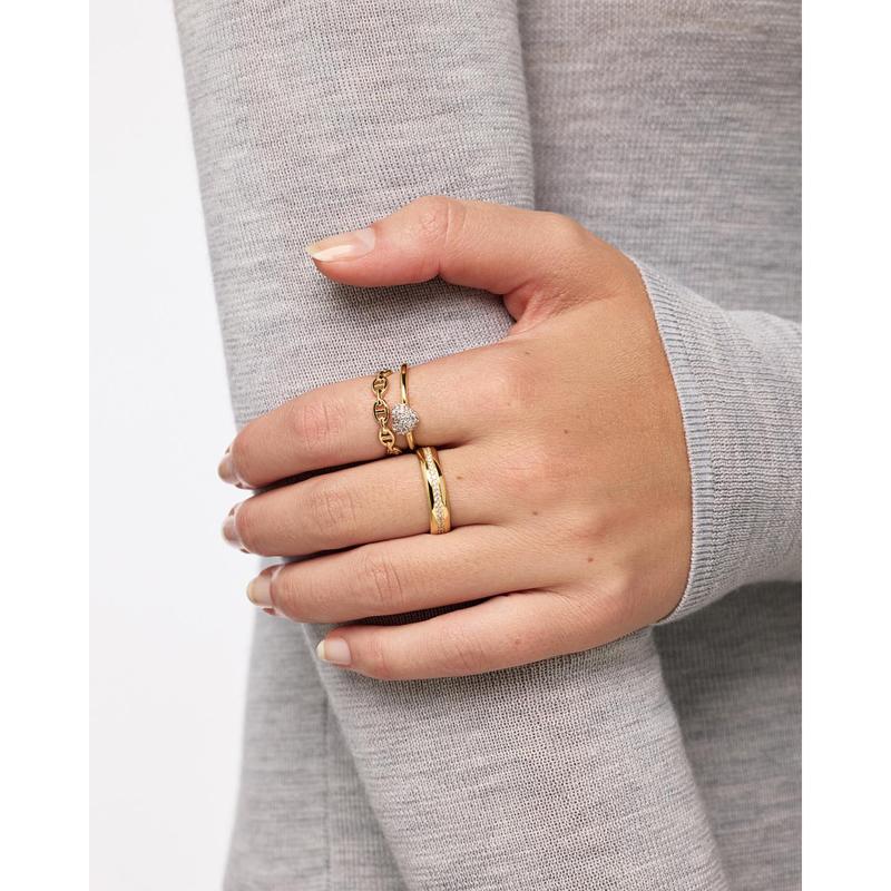 Meet our anchor chain ring—an artfully crafted piece that looks & feels like luxury but is actually made to fit your lifestyle. Crafted with a modern design and dipped in 14K gold, this chain link ring delivers the finer things in life right at your fingertips. Our anchor chain ring, Iver, pairs great with martinis in Paris, brunch by the sea, and (most importantly) other bold rings like our Cody Signet.