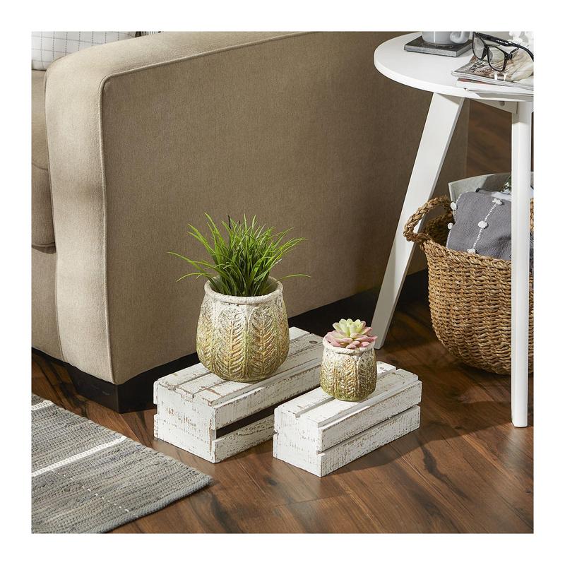 Add a touch of charm to your garden or home with this beautiful set of two flower pots. Perfect for both indoor and outdoor plants, these cement pots will showcase your flowers and greenery in style. Strategically crafted, they come with foam feet to protect your surfaces. From Zingz & Thingz.