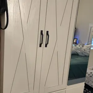 ·【Stylish and Functional】Featuring an X-shaped door design and sleek black metal handles, this white closet combines elegance with timeless appeal. It not only expands your bedroom storage but also elevates its aesthetic, complementing any home decor