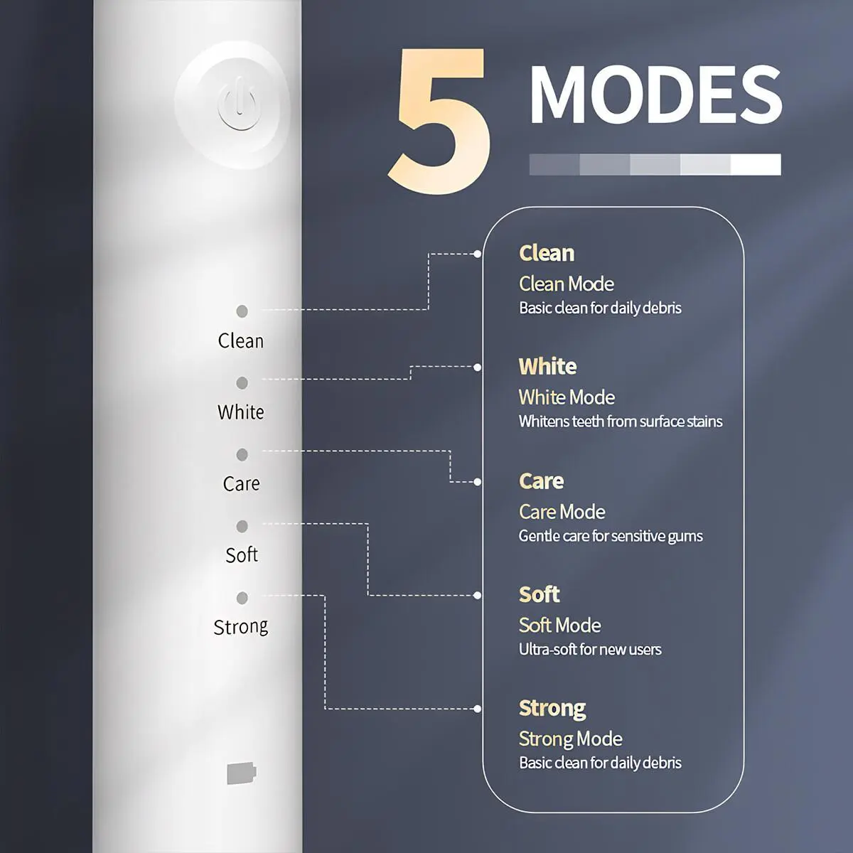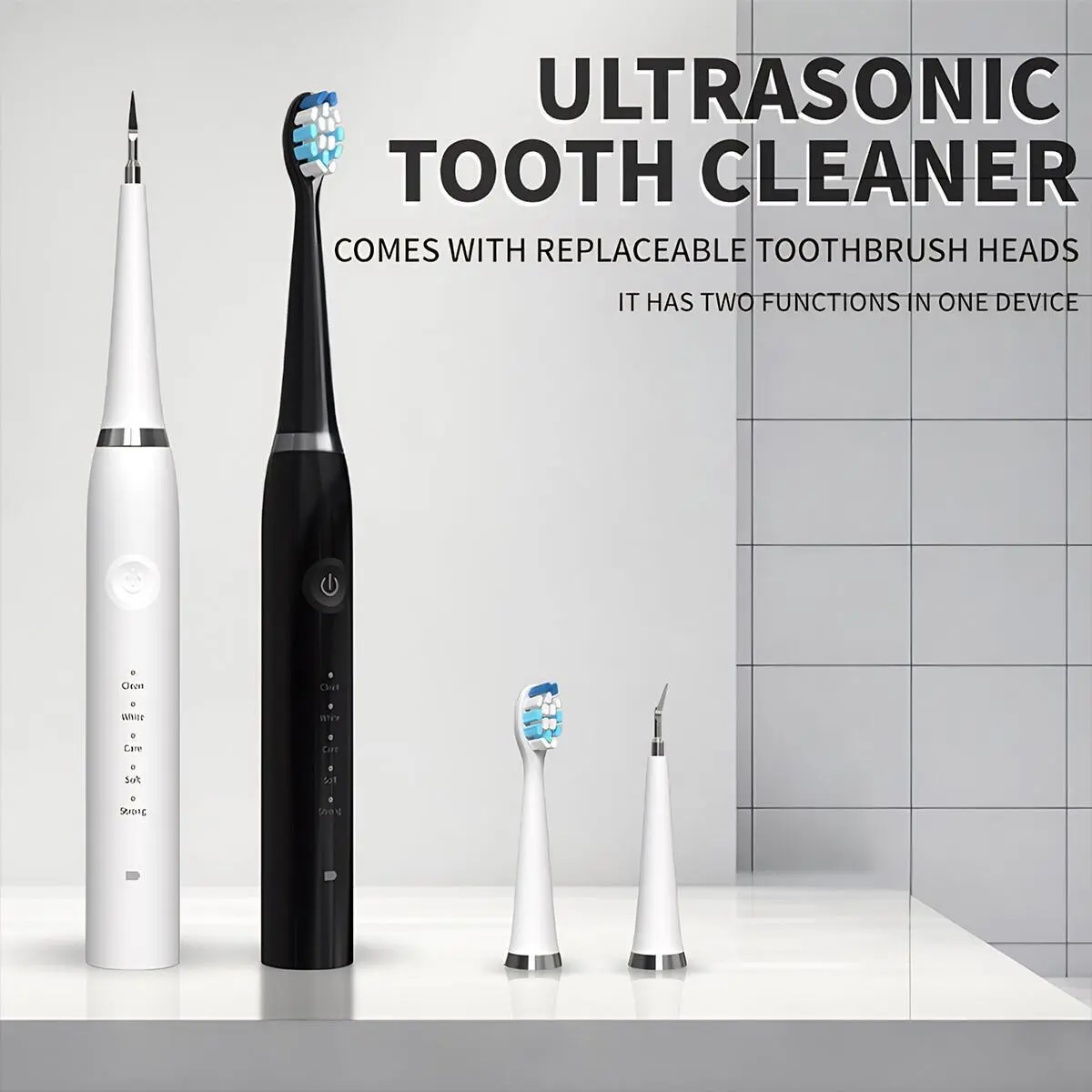 Tired of juggling multiple oral care tools? Meet your new favorite: a multifunctional electric toothbrush and plaque remover all in one sleek, portable device. Whether you're at home or on the go, this kit makes oral hygiene effortless and thorough. Its IPX7 waterproof design means you can even freshen up in the shower without worry. Choose from five cleaning modes—from gentle soft for sensitive gums to strong for a deep daily clean—tailored to your unique needs. The included mouth mirror helps you reach every corner of your mouth, leaving no plaque or tartar behind. Powered by a long-lasting battery charged via convenient Type-C, this device runs quietly but vibrantly with 33,000 sonic pulses per minute to blast away debris and surface stains. The kit comes complete with two replaceable DuPont brush heads, a hook-like cleaning head, and a handy charging cable. Ready to upgrade your smile routine? Grab this all-in-one teeth cleaning kit and make sparkling clean teeth your new everyday vibe!