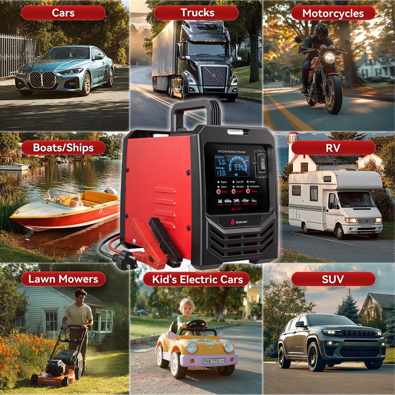 [High-Efficiency Pulse Repair Mode] The Repair Mode can revive dead batteries (above 3V) in various vehicles such as cars, trucks, motorcycles, boats, marine equipment, RVs, and lawn mowers. It is specifically designed to breathe new life into dead batteries above 3V across different vehicle types.