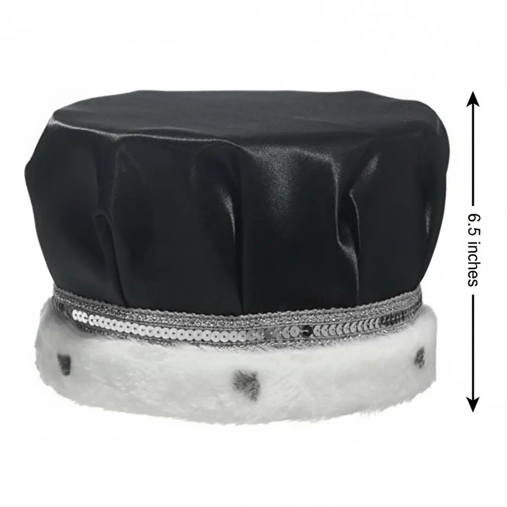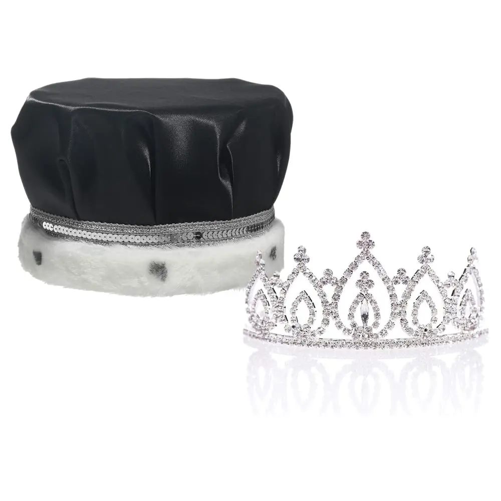 Premium Black Satin King Crown: A luxurious black satin crown trimmed in soft faux white fur and finished with a sparkling silver sequin band—expertly crafted to give Kings, parade royalty, pageant winners, and distinguished honorees a bold, refined, and regal appearance