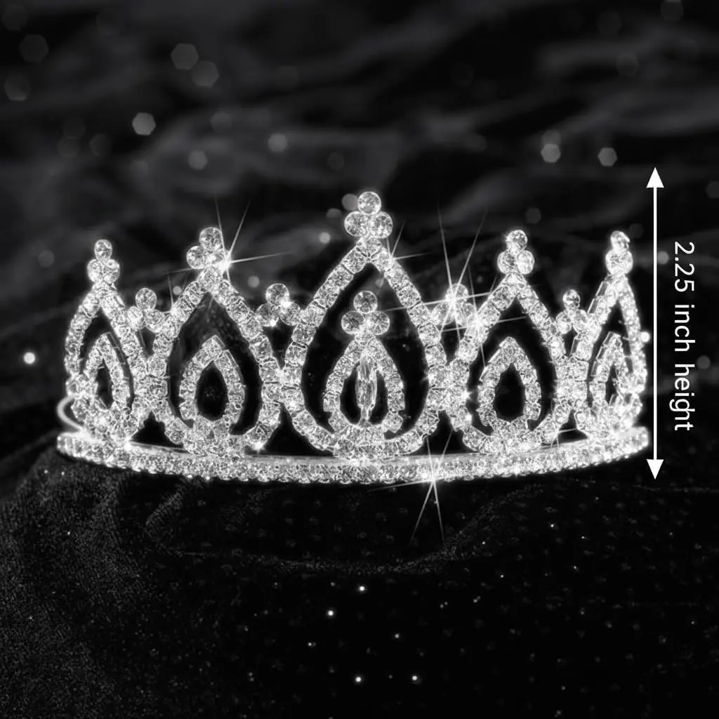 Elegant 2¼" Rhinestone Becca Tiara: The Becca Tiara dazzles with brilliant clear rhinestones arranged in a beautifully detailed, eye‑catching design—an exquisite handcrafted accessory ideal for Queens, princesses, Sweet 16 celebrations, themed weddings, formal presentations, and costume events