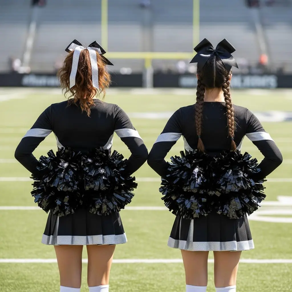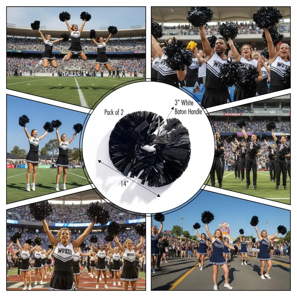 UNLEASH THE SPIRIT – SET OF 2 BLACK POM POMS FOR DOUBLE THE FUN: Whether you're cheering at a pep rally or dancing in a parade, these pom poms bring twice the sparkle and energy to every celebration. Perfect for kids, teens, and adults who love to shine in bold Black