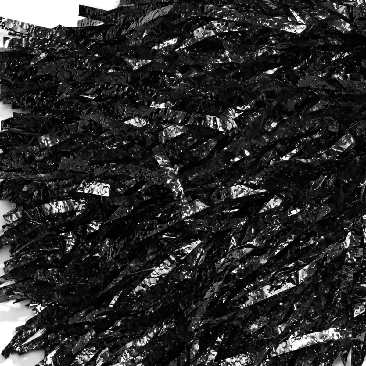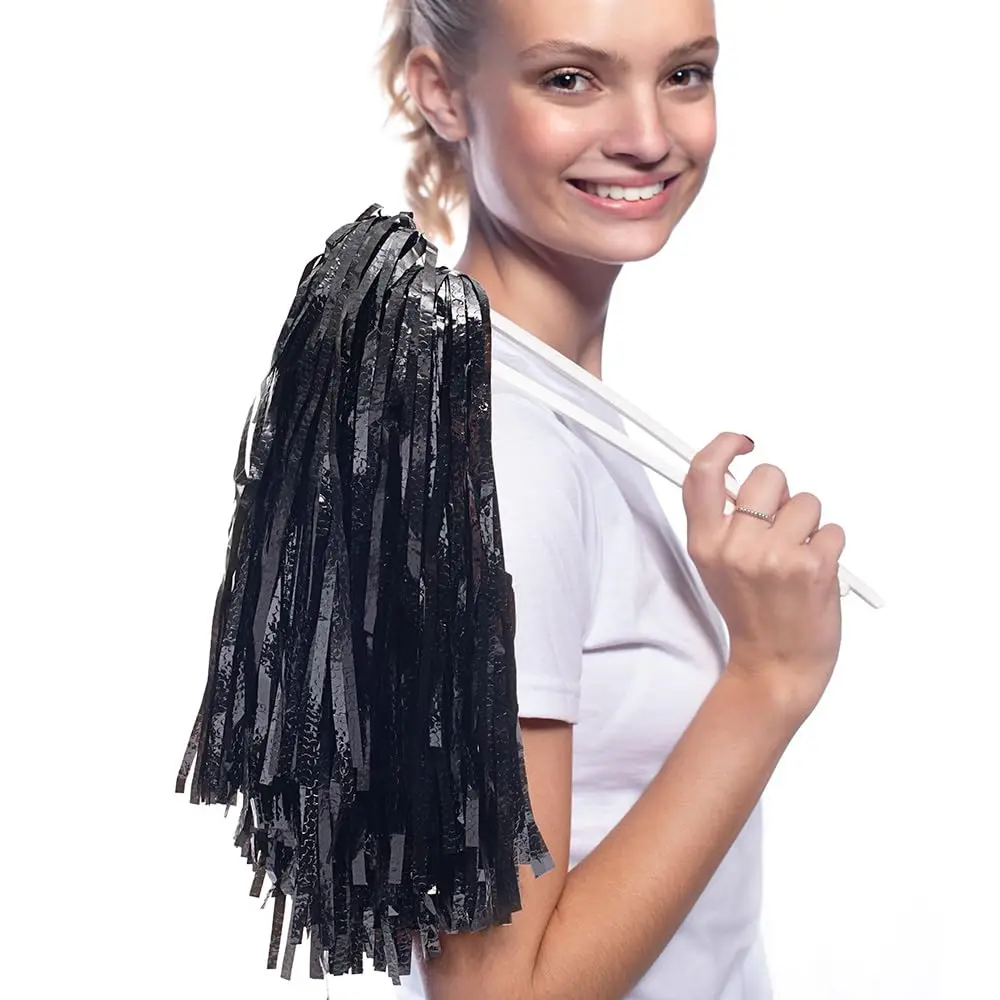 Re-energize your spirit gear or fan gear with this Black Metallic Textured Pom Pom Set! Instead of plastic vinyl or flat metallic strands, these Pom Poms feature strands of metallic textured material. The PVC material is similar to metallic strands, but these strands have a "crinkly" embossed texture to them that resembles fractalized ice! The special material also provides an amazing amount of shimmer and shine; they're must-have accessories for outdoor events with the sunlight shining on them! The amount of black strands combines with the texture to create a natural thickness--giving you more to cheer with for your next game day, holiday, or special event. The complete set includes (10) Black Metallic Textured Pom Poms with 11" long strands on an 11" white plastic handle. Match the purple color to your school colors, team colors, business logo colors, holiday colors (Halloween, New Year's Eve), or special event color scheme. Everyone from your nimble cheerleaders, dancers, and athletes to students, relatives, and community members in the stands will love using these Black Metallic Textured Pom Poms! Make sure you have plenty of Pom Poms on hand for school, community, or professional team game days; competitions; marathon fundraisers; concession stands; pep rallies and parades; high school and college Homecoming; Senior Party keepsakes; tournaments, playoffs, and championships; graduation day, milestone birthdays, carnivals, and more. The "razzle dazzle" of these Black Metallic Textured Pom Poms will appeal to people of all ages, from preschoolers to high school teens to adults. The reusable Pom Poms will bring out the kid in everyone who uses them!