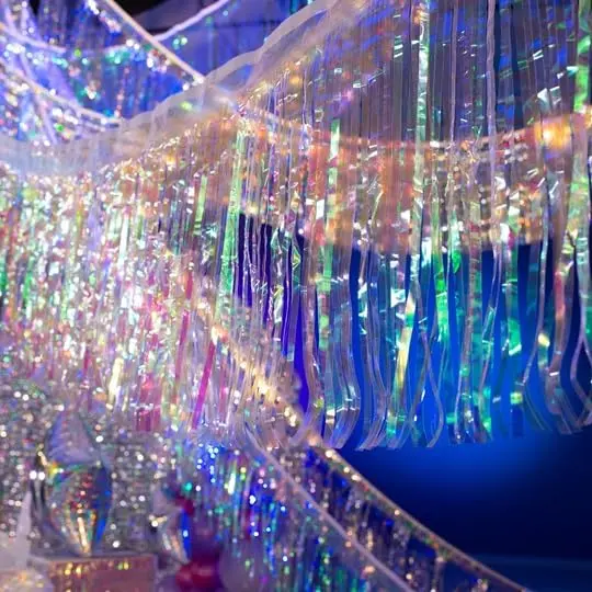 Eye-Catching Fringe Decoration: Add shimmering silver holographic flair to your event with this vibrant fringe—perfect for parades, parties, school events, doorways, and even patriotic celebrations
