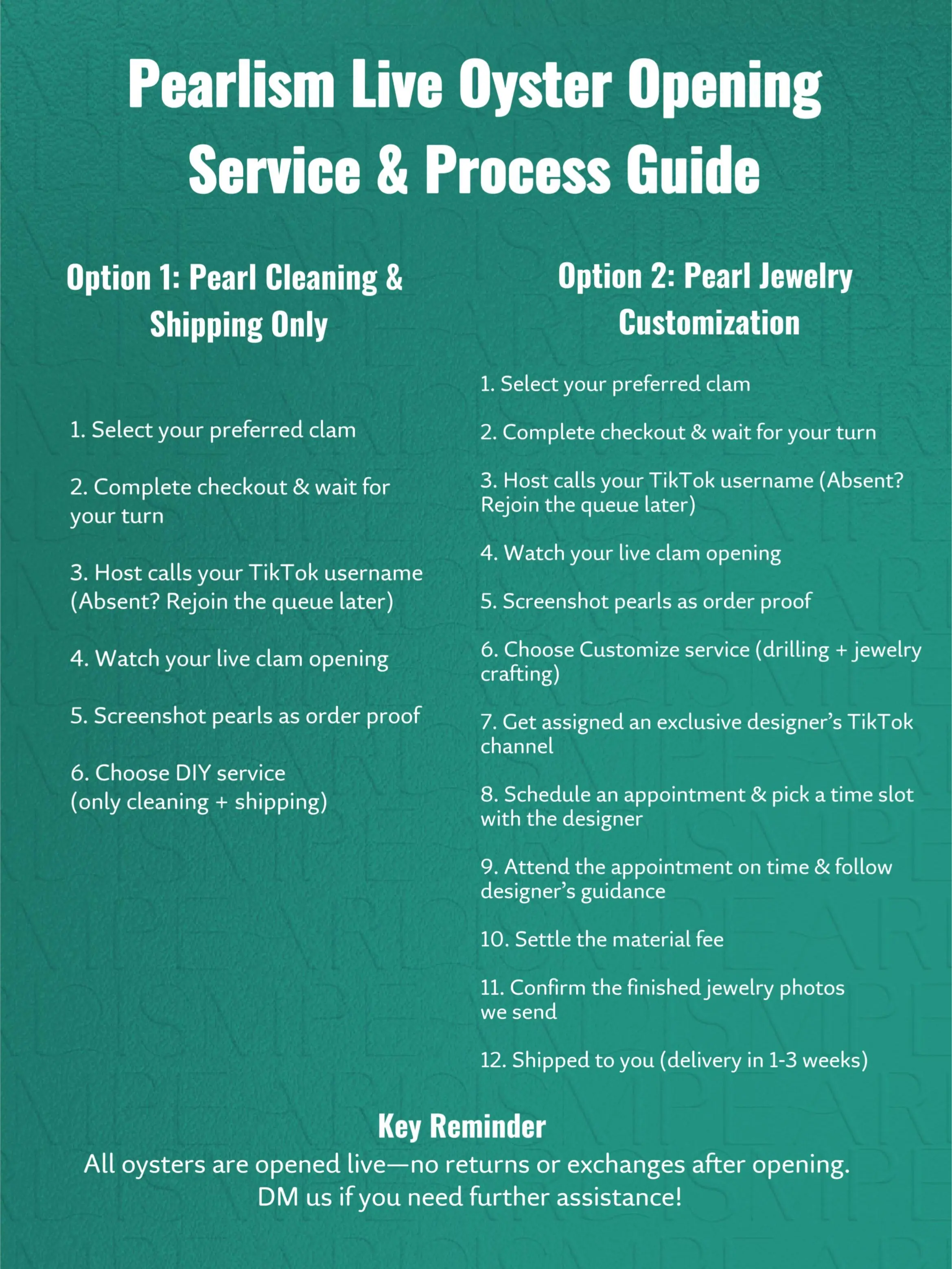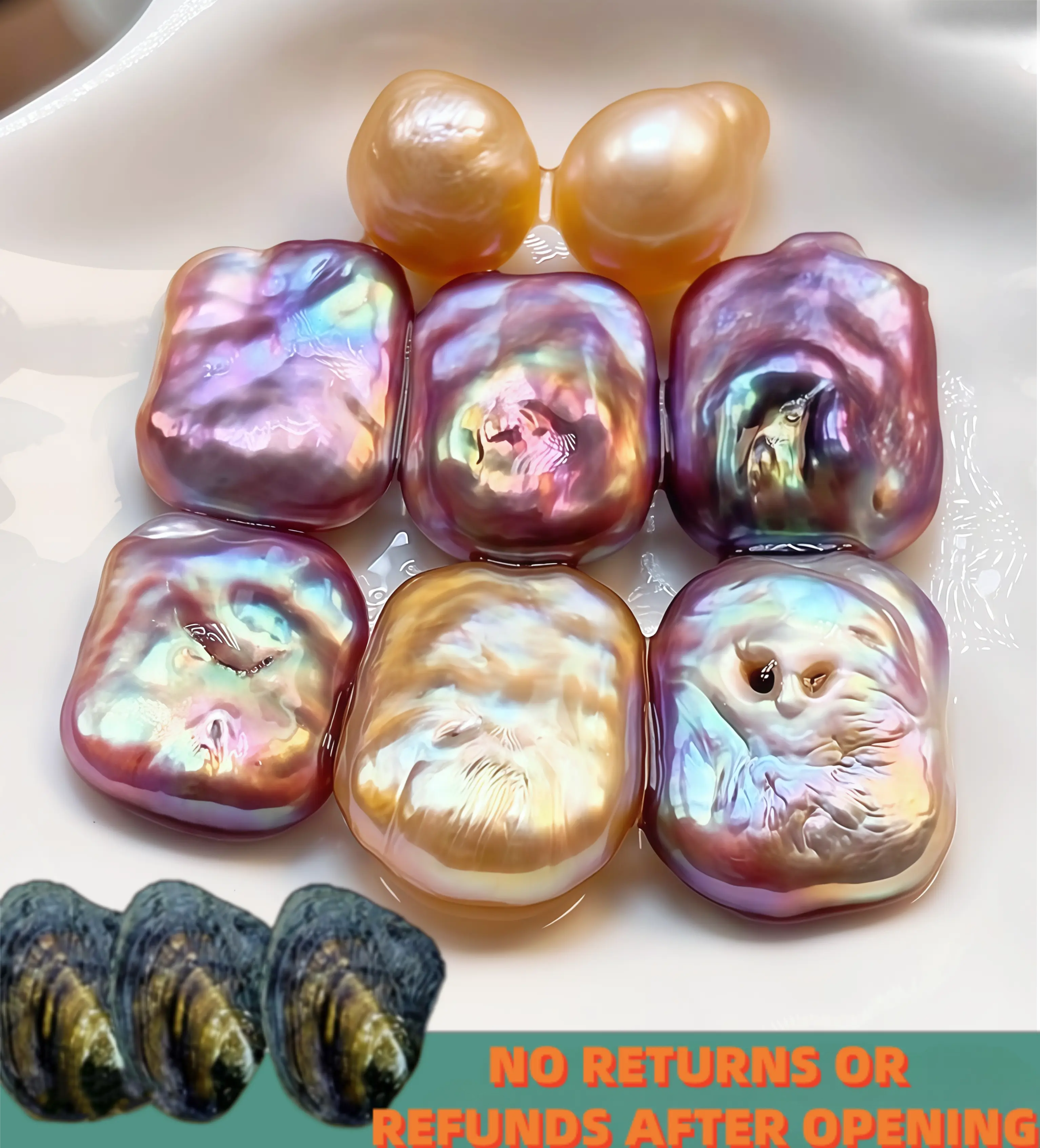 READ BEFORE PURCHASE:NO REFUNDS: Once the oyster is opened on Live, no returns, refunds, or exchanges are accepted.NATURAL VARIATION: Pearls are natural. Variations in color, shape, and blemishes are normal.