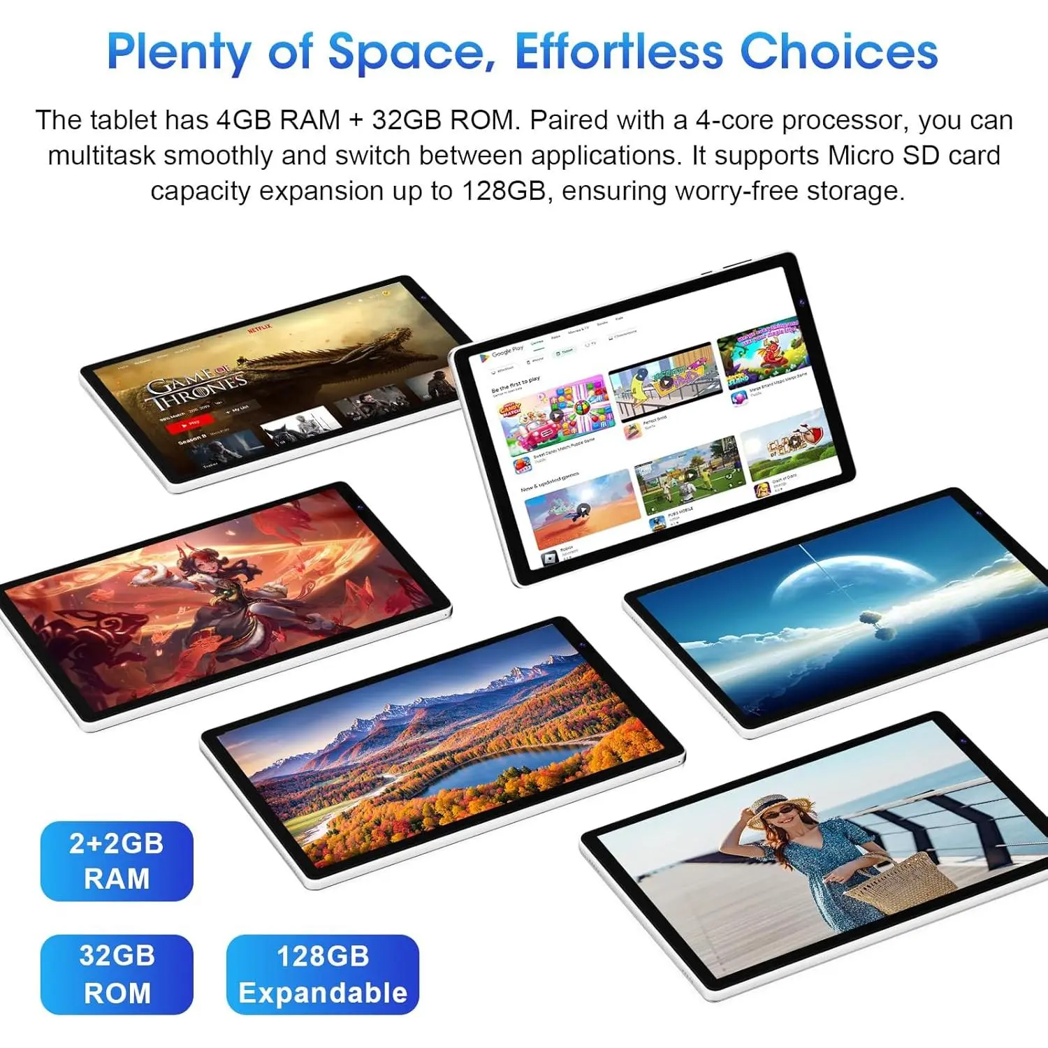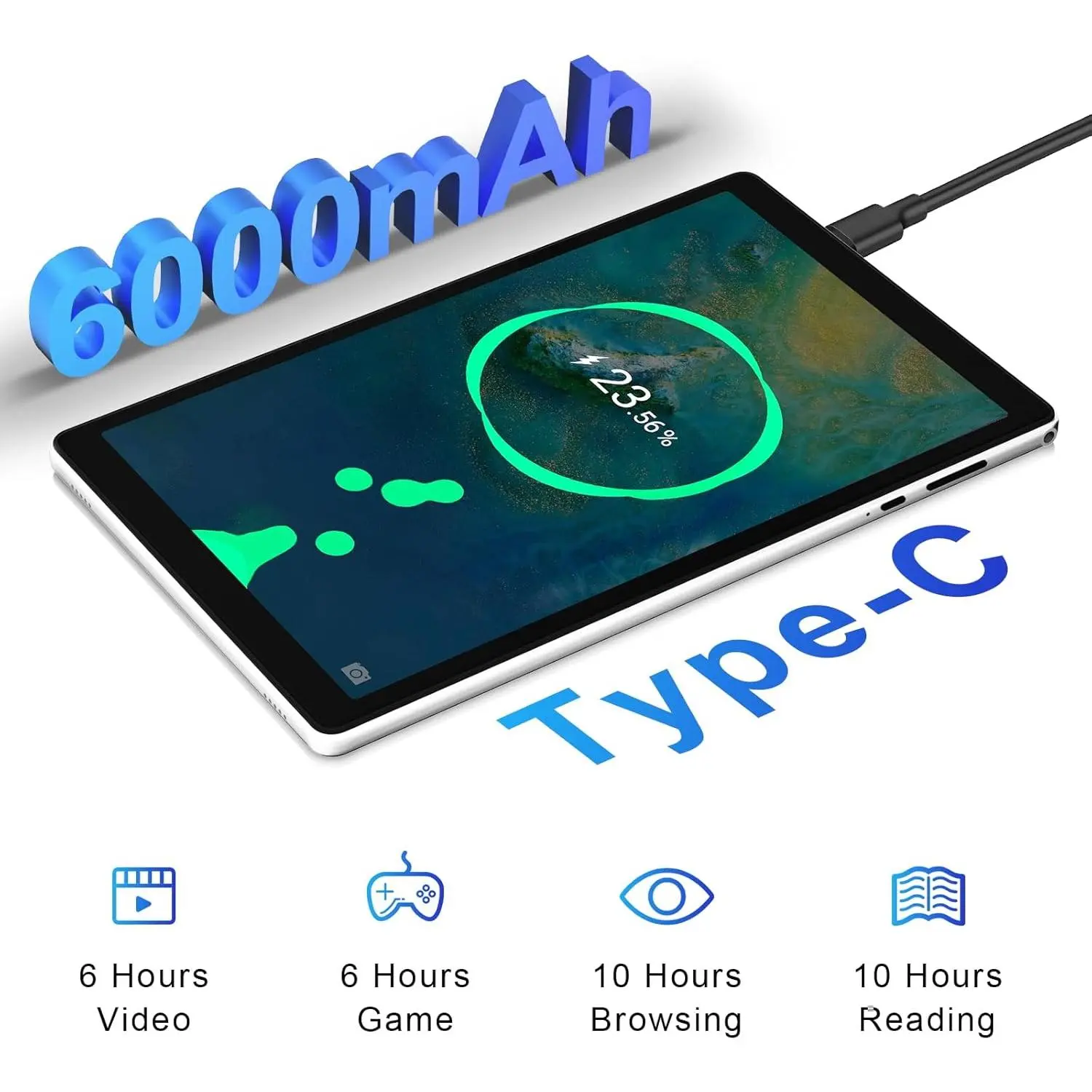 Built with a large 6000mAh battery, this tablet offers long-lasting battery life for all-day use, greatly reducing frequent charging and making it very suitable for home, travel and outdoor use.
