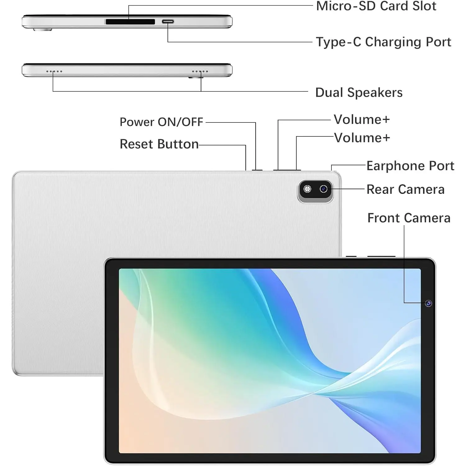 With a stylish silver appearance and slim lightweight body, this tablet is portable and fashionable, easy to carry in bags for students, office workers and daily users anywhere.