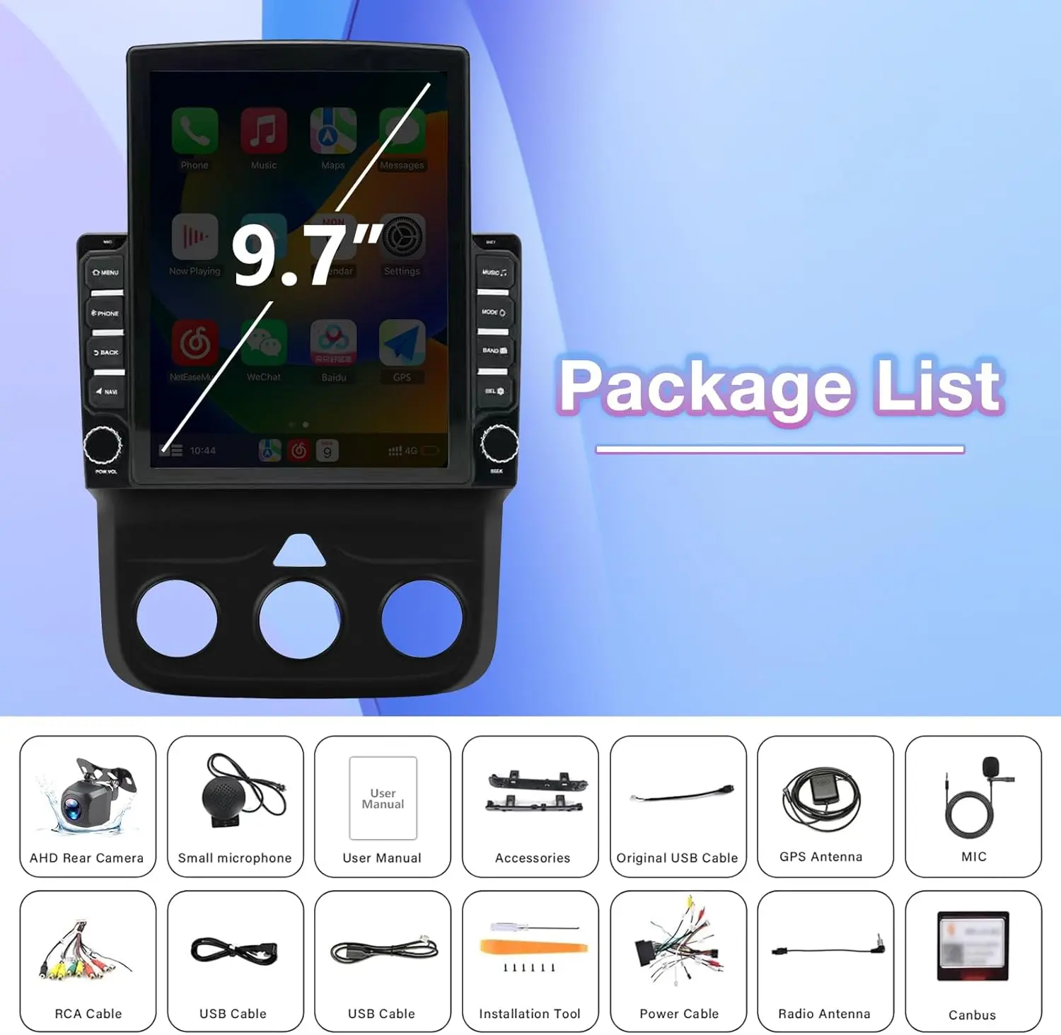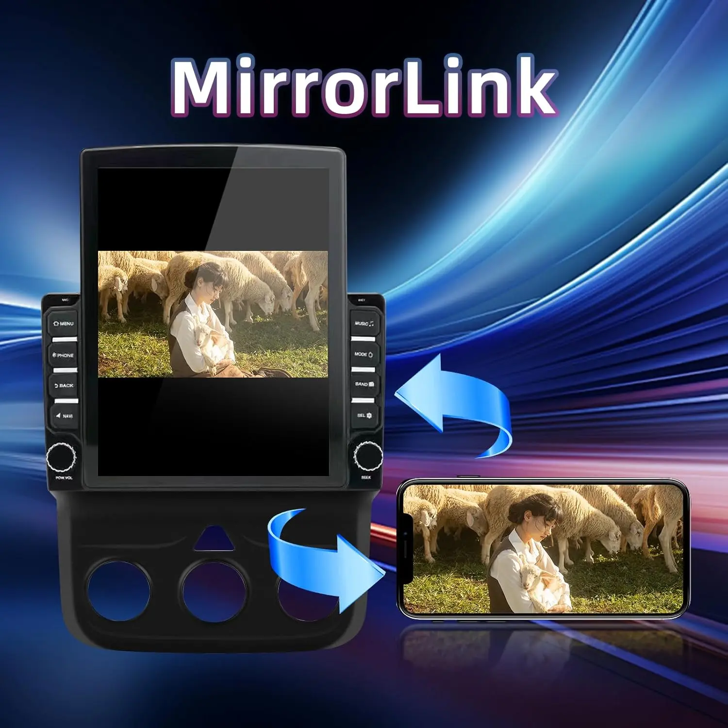 9.7-inch HD Car Radio Stereo compatible with Dodge Ram 2013-2018 1500 2500 3500 is the ultimate choice for a seamless fit and integration, designed specifically for Manual AC models. Enjoy crystal-clear audio with the 2.5D Tempered Glass Mirror display, ensuring durability and style. Elevate your driving experience with easy navigation and connectivity.
