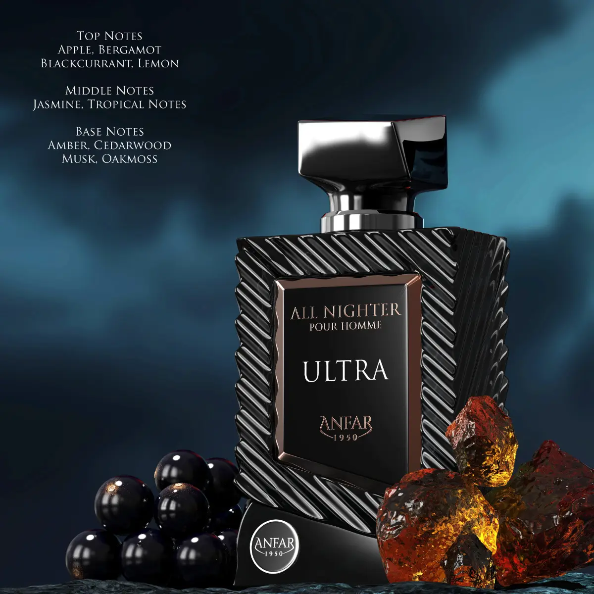 Anfar 1950 All Nighter Ultra is a bold and sophisticated fragrance designed for the modern man who moves through life with instinct, clarity, and unstoppable drive. Confident and elegant, this signature scent doesn’t follow trends—it defines them.