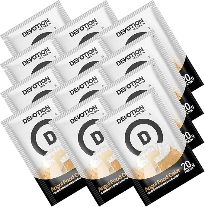 Devotion Nutrition Angel Food Cake is a whey and micellar casein protein powder in convenient single-serving packets. This multi-purpose protein supplement combines fast-digesting whey with slow-release micellar casein to support an active lifestyle, promote muscle mass gain, and help maintain a healthy diet.