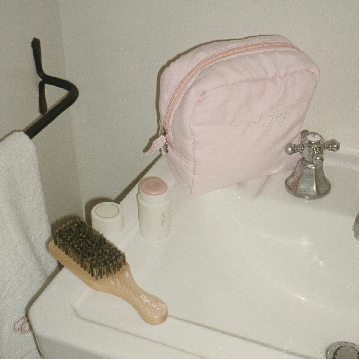 Made by hand and embroidered with a dainty Emi Jay emblem, this pouch was designed to hold all of your daily essentials, Angelstick and favorite EJ accessories.
