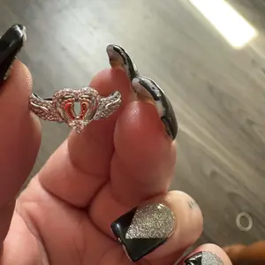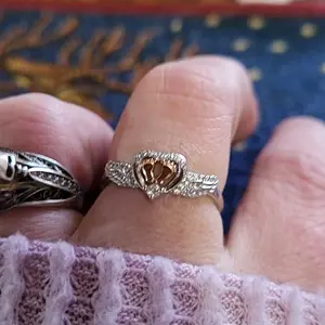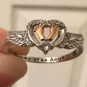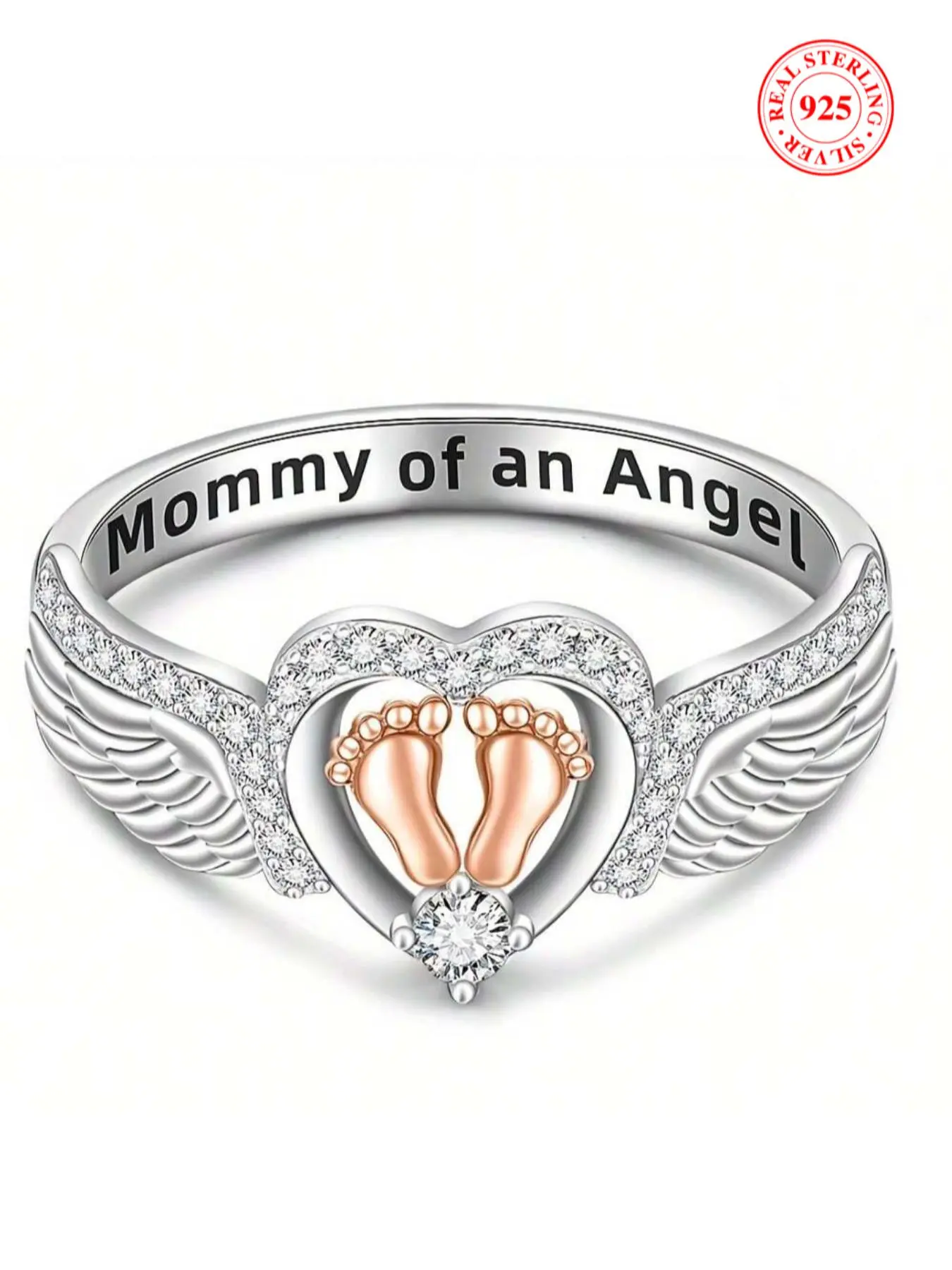 Beautiful and holds special meaning. I am a Mommy of SEVEN angels, so that is why this ring is very special to me. It's engraved on the inside of the band "Mommy of an Angel". I wish it said Angels, butt it's ok, I know what it means and so do my babies. Highly recommend this ring. .925 silver.