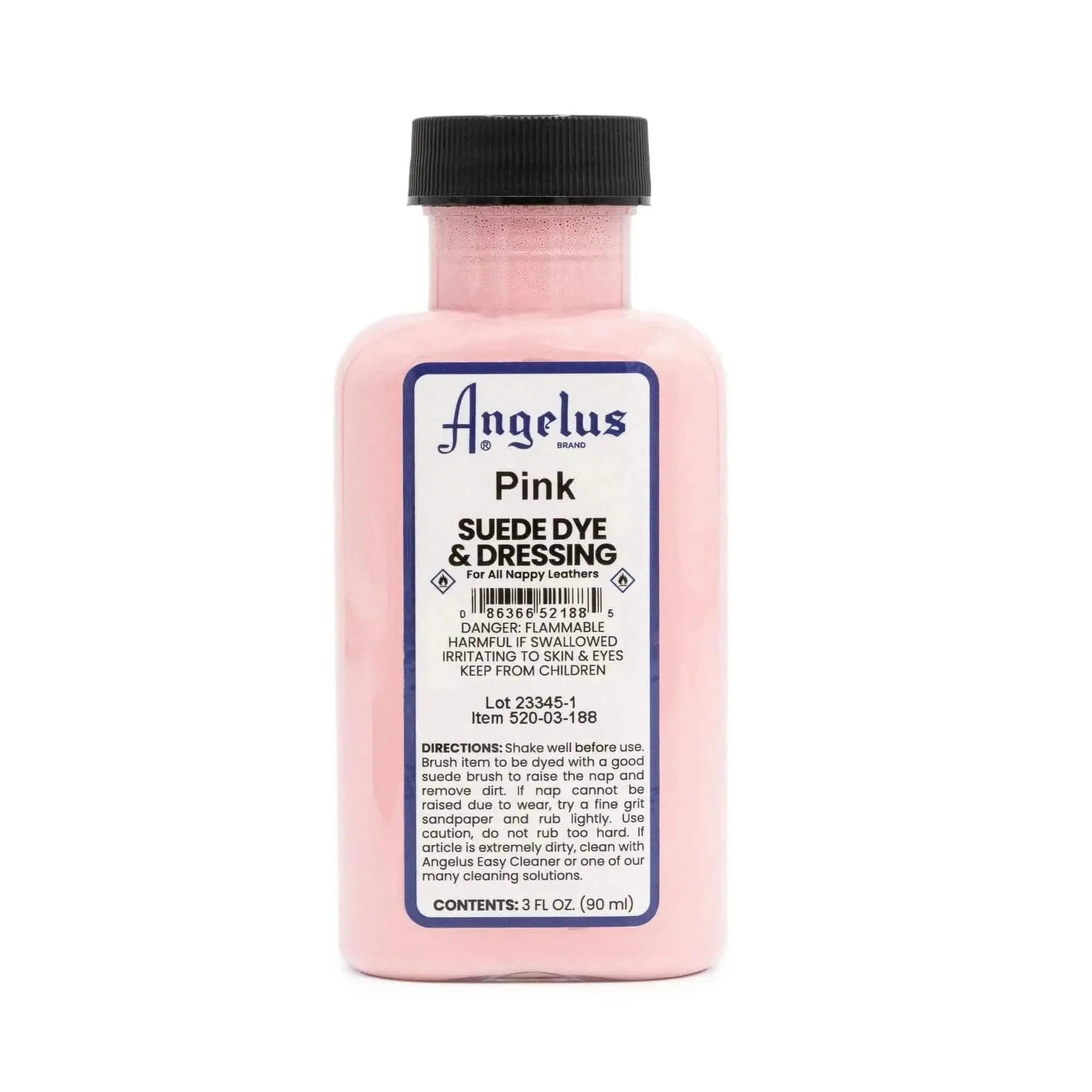 * Dye soaks into the suede rather than sitting on top. The final color depends on the base color of the suede leather it is applied to. Example: a white surface dyed with red will turn pink, not true red.