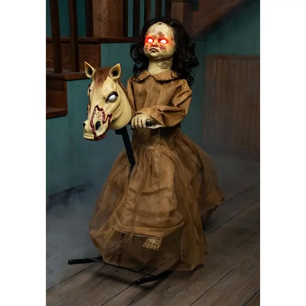 Oof. This is just... what were we thinking!? Folks, we're not sure what happened, here. Apparently, someone must have written down as a joke that we should create the most haunted, creepy, cursed little doll in the world and then give it transportation, too. Clearly, that should have been caught and halted in its tracks but it seems that somewhere between our Committee of Creepy Couture and Department of Demonic Deterrents, this idea passed the quality check and now we've got the perfect storm of terror—and it's on horseback! We should tell you to run away from this page as quick as you can but the curse of this little undead terror might have already gripped you tight.