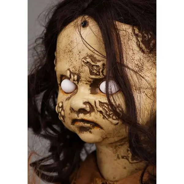 · Doll's eyes glow red, sings creepy songs, and has antiqued appearance