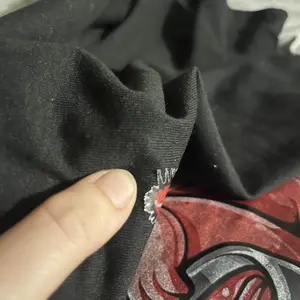 The graphic on the shirt is super dark, is covered in lines and not even fused to the shirt properly. The fabric is stiff and scratchy.