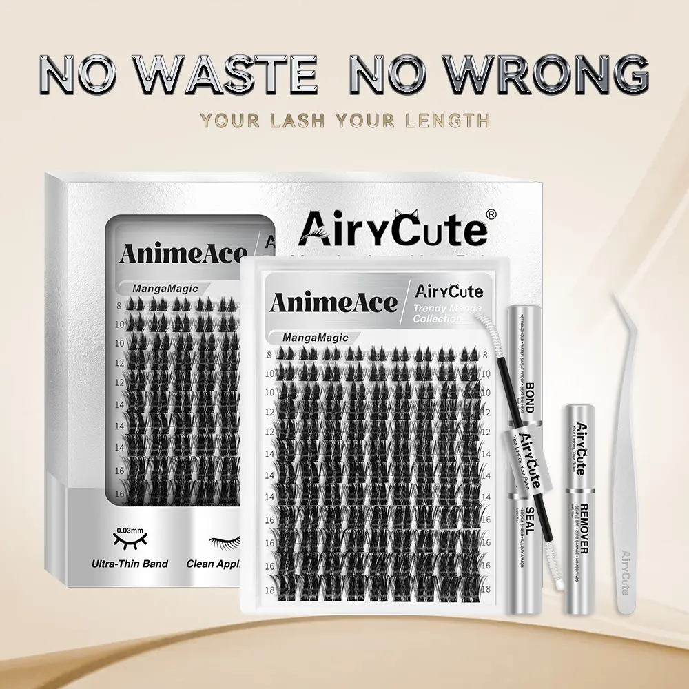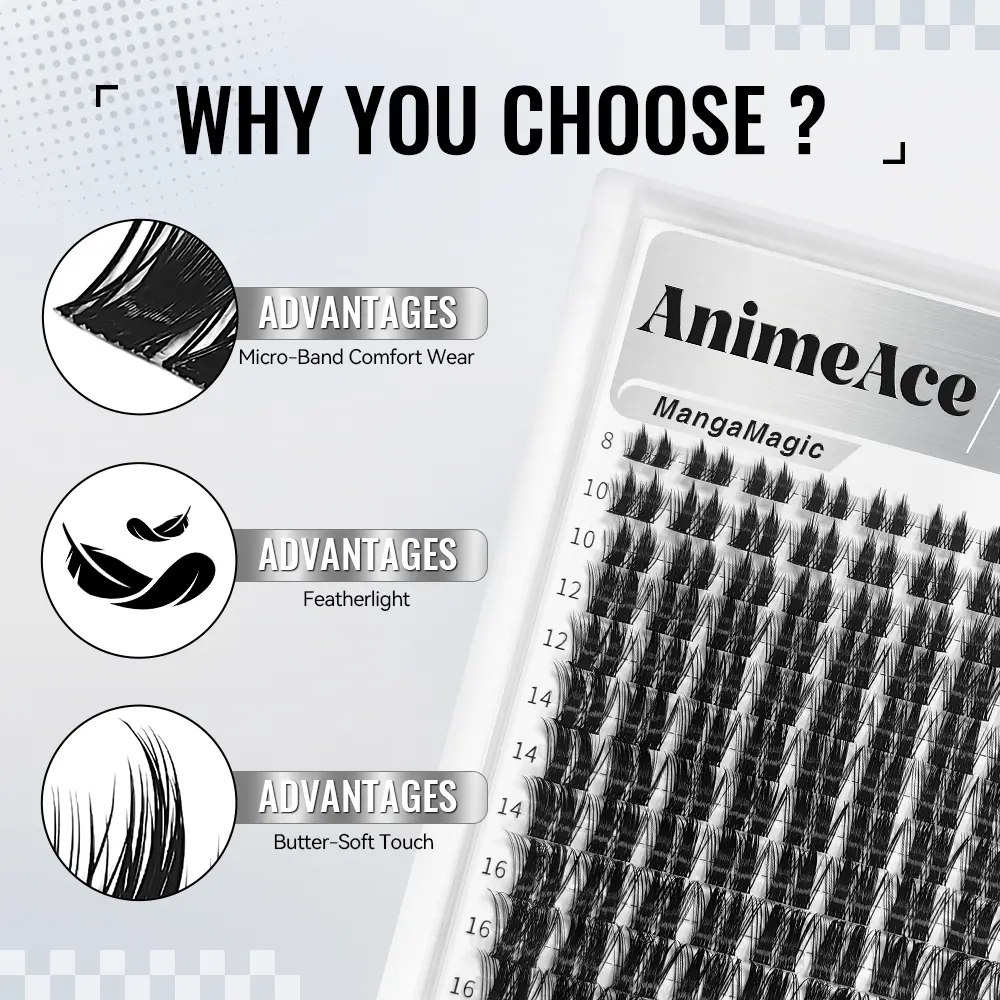 Upgrade your look with AnimeAce's Ultra-Dense, Waterproof Lashes. These lashes offer a flawless, voluminous appearance, perfect for beginners. The DIY clusters are beginner-friendly, ensuring a trendy and must-have addition to your collection. Achieve a fashion wet look effortlessly.