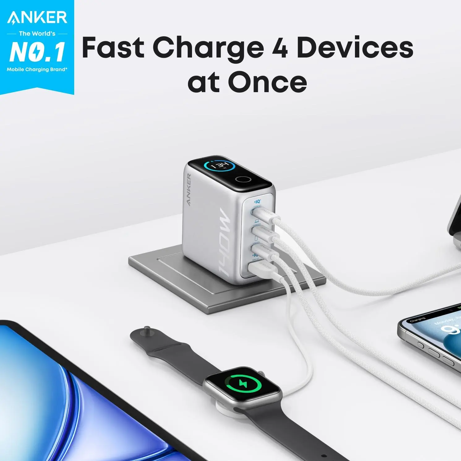 The digital display on this is great. You know what's charging and how fast. So many ports for different items... Just a game changer!
