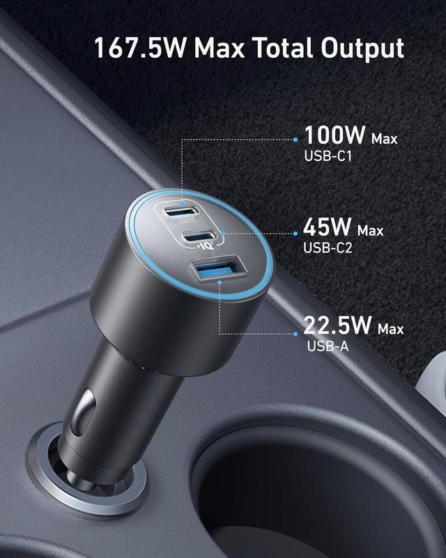 ·What You Get: Anker Car Charger (167.5W, 3 Ports), 3.3 ft USB-C to USB-C cable, welcome guide, 18-month warranty, and our friendly customer service.