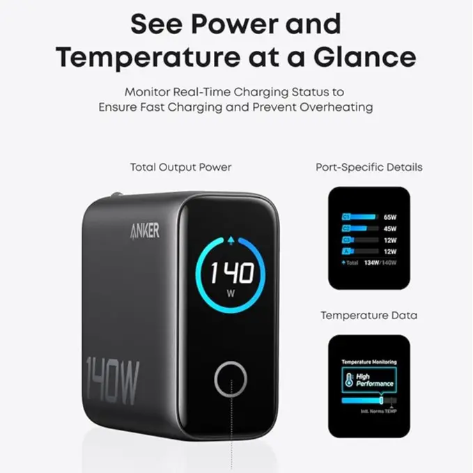 ·Monitor with Ease and Clarity: The high-definition color display provides a detailed view of the charging status, temperature, and port details, keeping you fully informed.