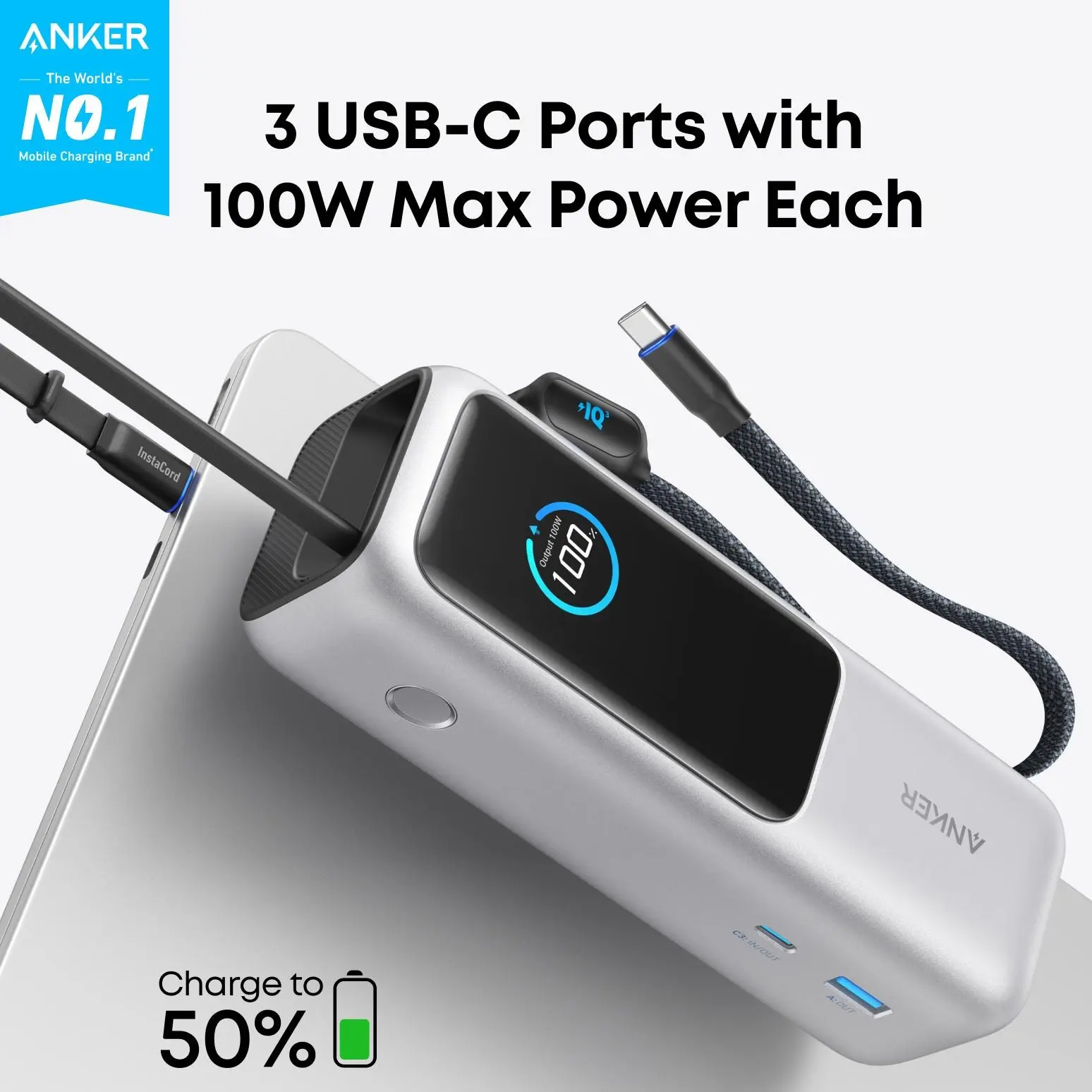 ·Triple 100W USB-C Ports for Multi-Device: Designed for multitaskers, featuring three USB-C ports each delivering up to 100W, allowing you to power a MacBook and other devices simultaneously without losing charging speed.