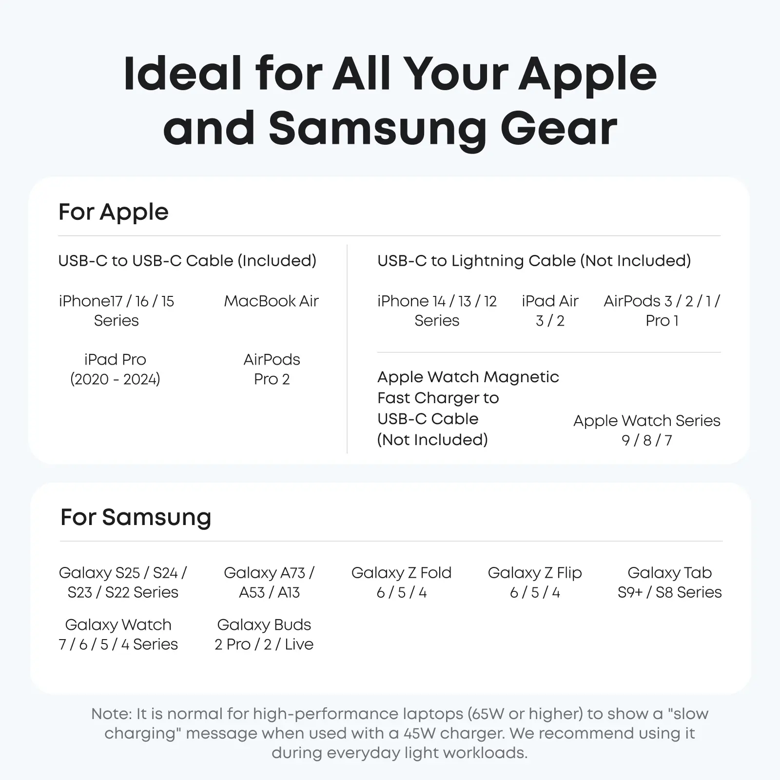Great small nano 45w charger from Anker. This literally can do ALL mobile devices and is sleek as well … had to by another