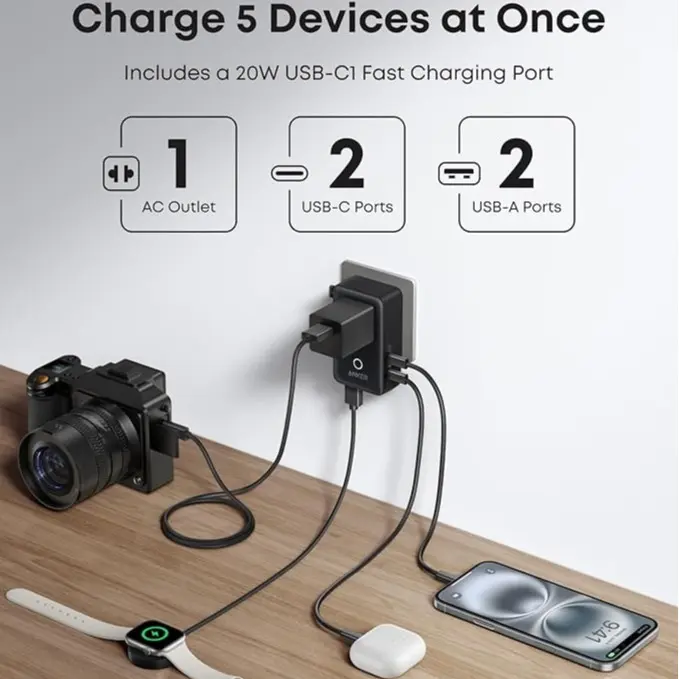 Perfect for traveling! The extra usb outlets makes it more convenient.
