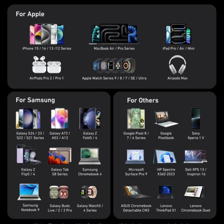 We love these chargers. We have this unit and its sibling with the screen all over our house. Must have bought 8 by now. Charges iPhones, iPads, and power banks great. As far as we have found, if the device has a USB A or C it can charge it.