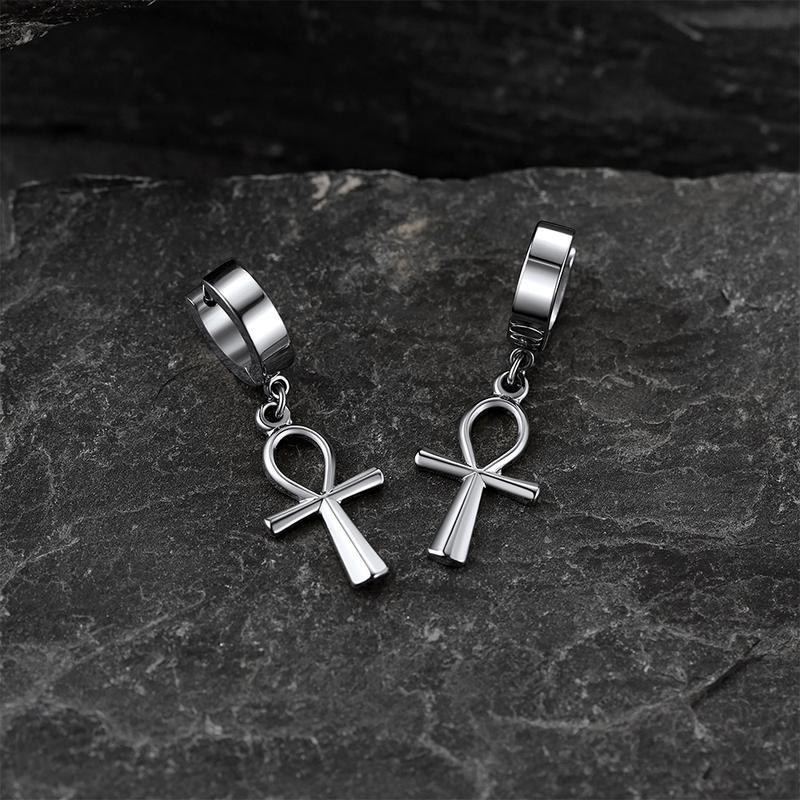 FaithHeart Ankh Cross Dangle Hoop Earrings Stainless Steel