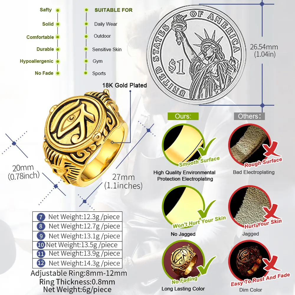 ·Ancient Egyptian rings fits men and women, available in US sizes 7, 8, 9, 10, 11, 12, 13, 14