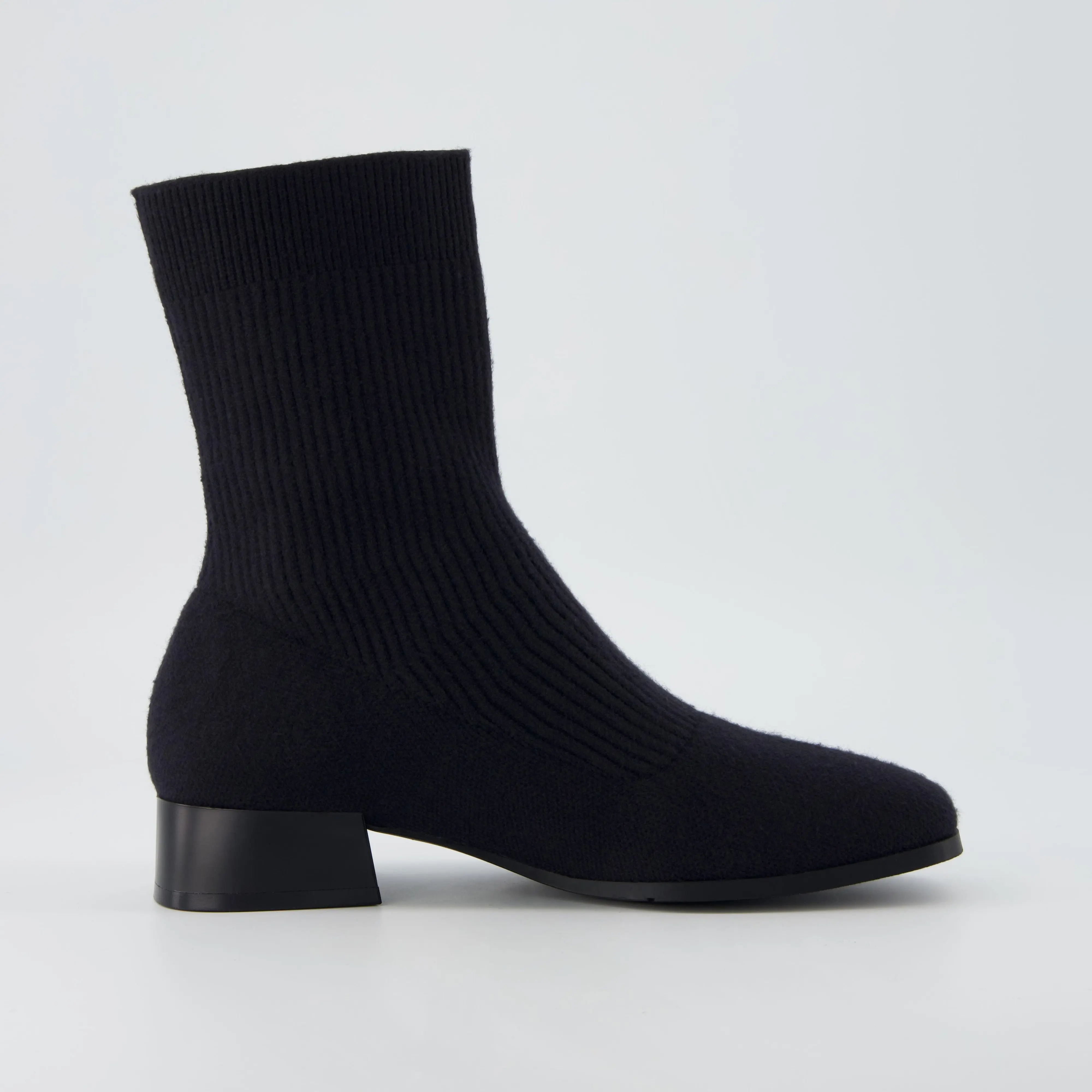 Meet Russel, your new go-to ankle boot that combines sleek style with everyday comfort. This boot features a ribbed knit upper that offers a cozy, sock-like fit, adapting to your foot for both flexibility and warmth. Perfect for long days on your feet, this boot is a versatile addition to your wardrobe.