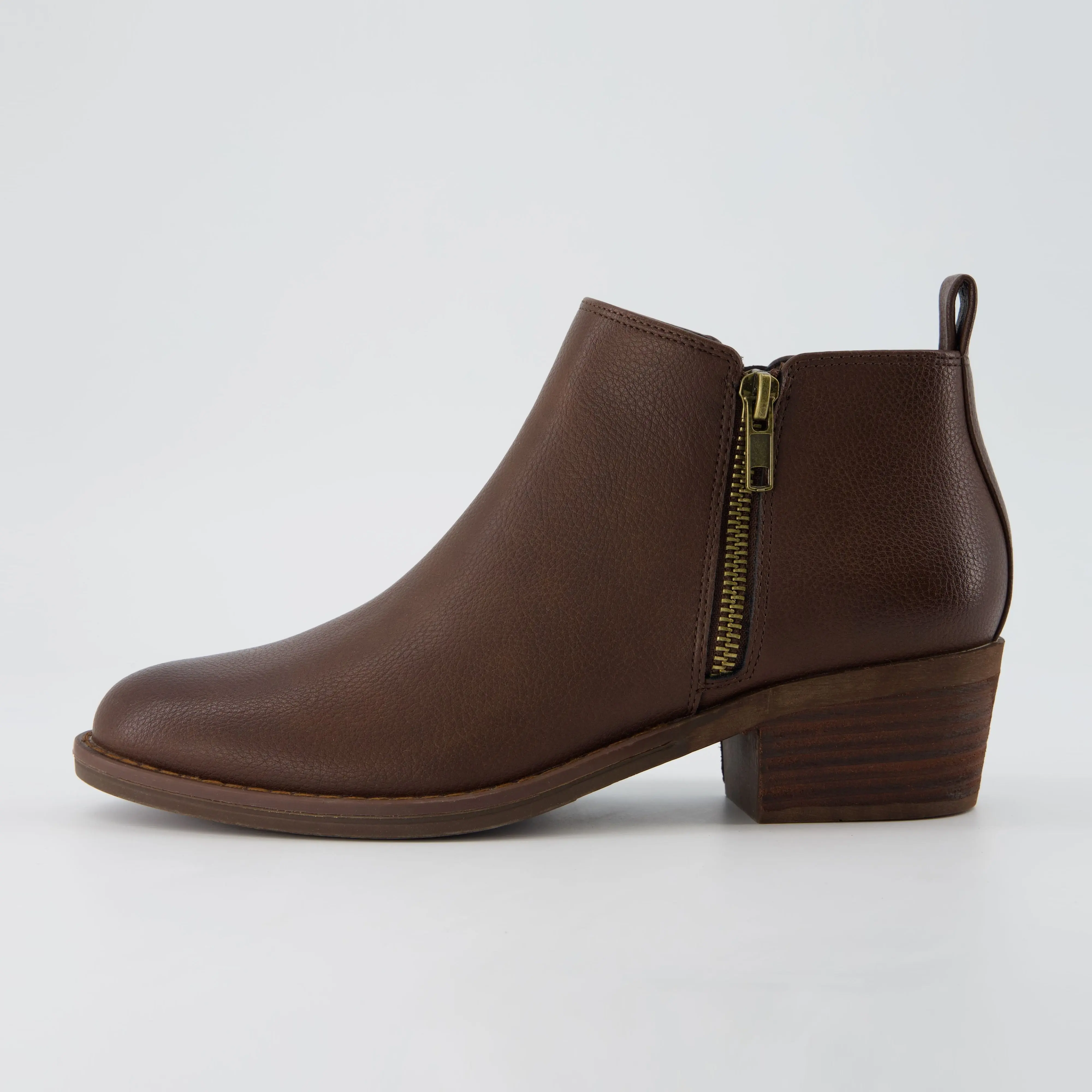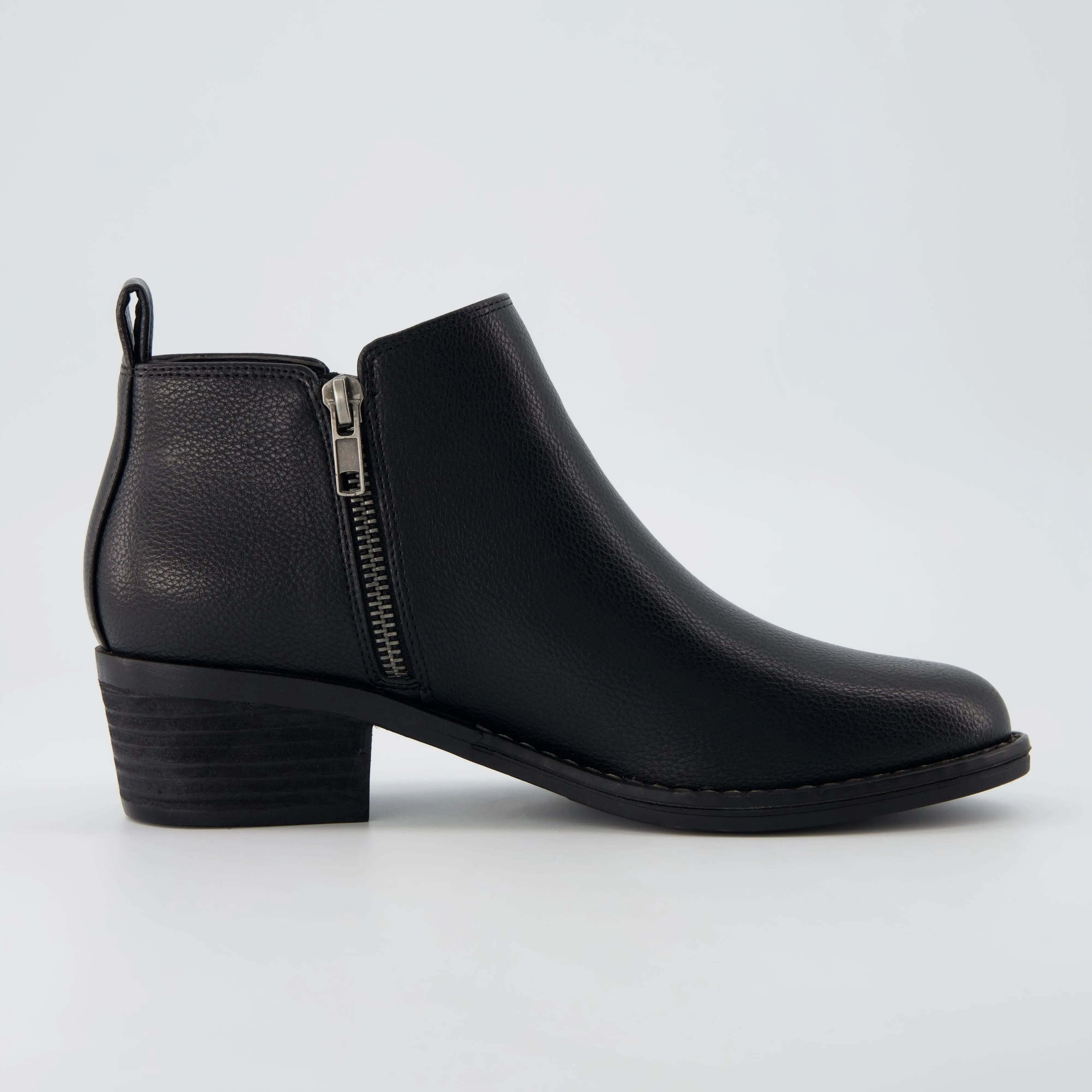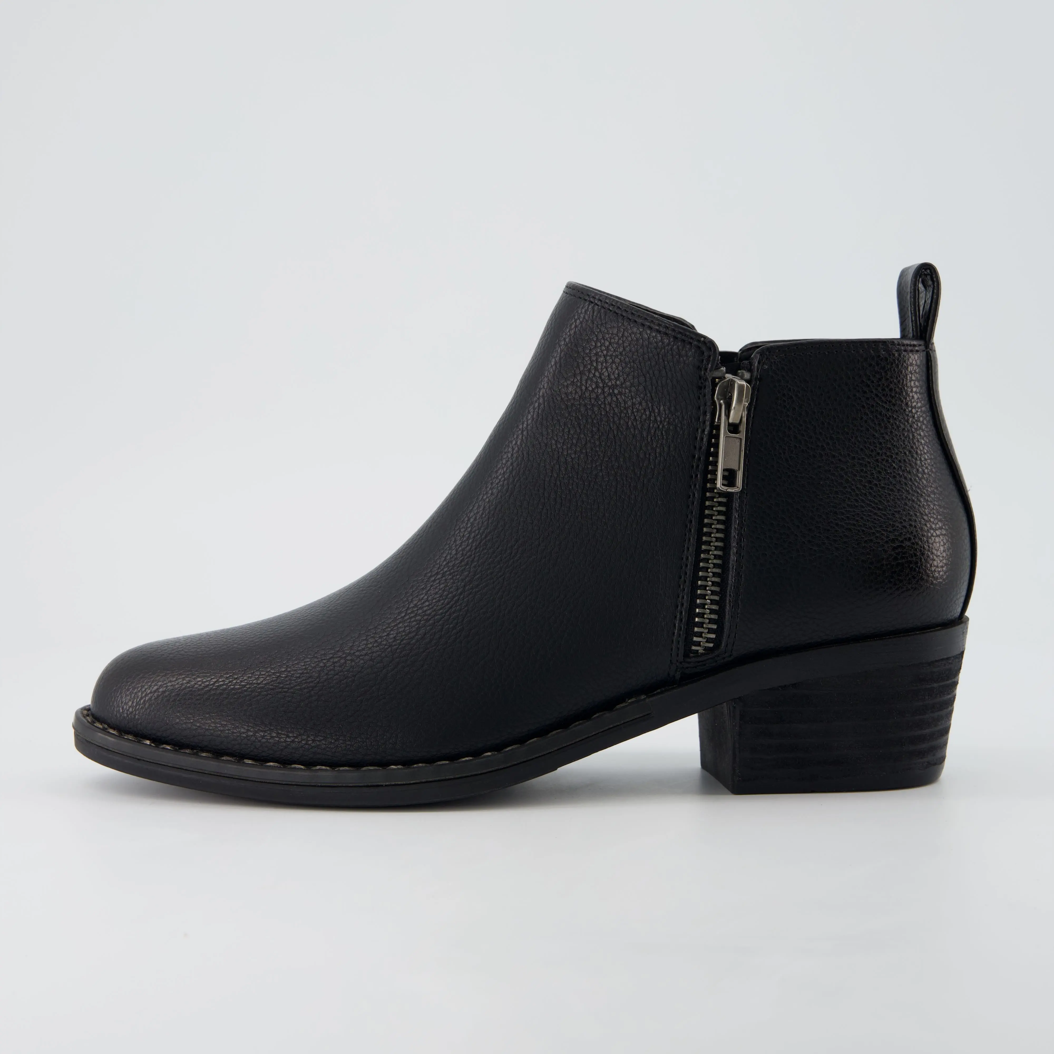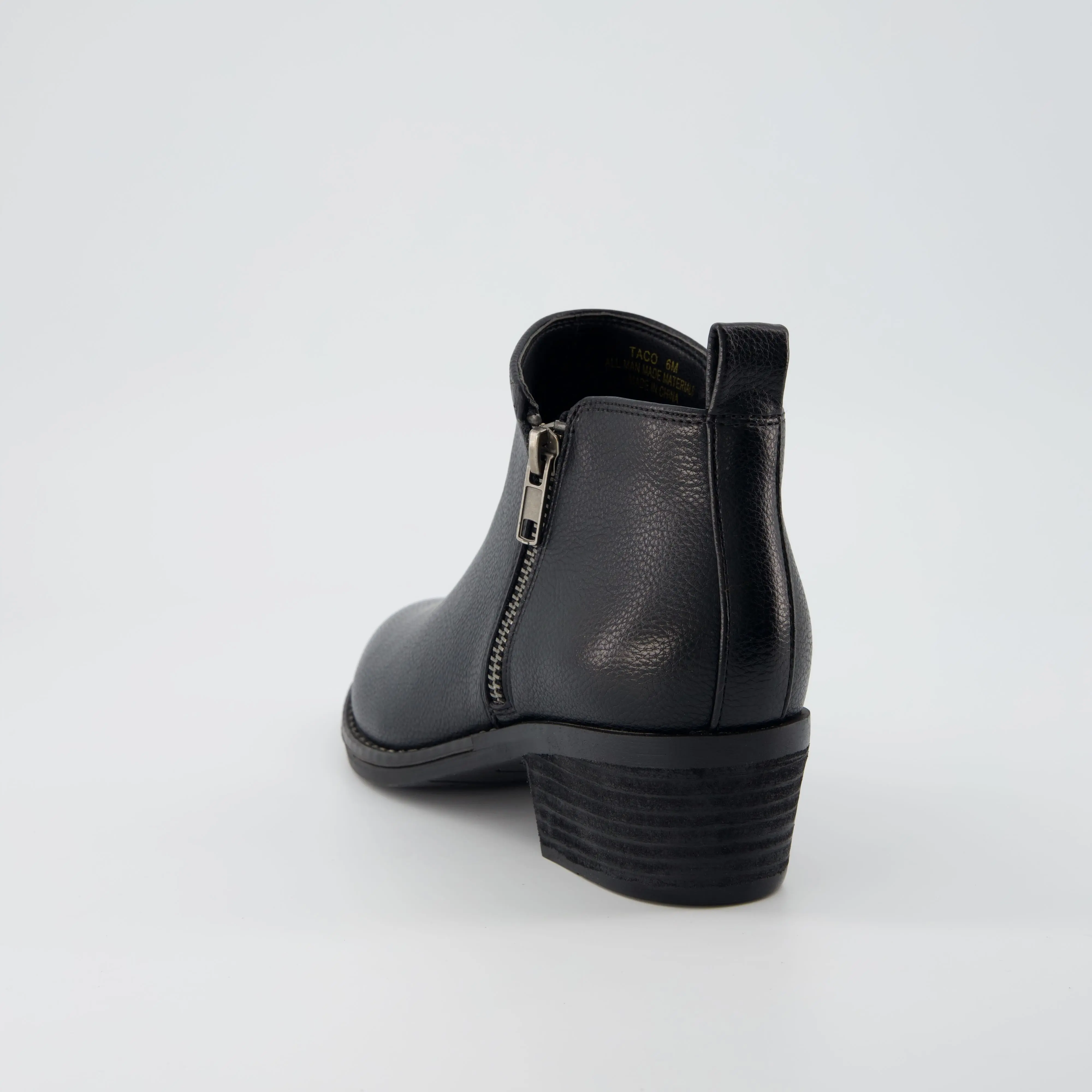 Meet Taco, a zip-up heeled ankle boot. Featuring a 2-inch low stacked heel, Taco offers just the right lift while keeping you grounded with enhanced stability. The memory foam insole cushions each step, ensuring support throughout your day. A vegan leather upper paired with a smooth side zipper allows for quick and easy on/off access, making these boots perfect for busy mornings or on-the-go lifestyles. With a sleek design, Taco is versatile enough to pair with jeans, dresses, or skirts—ideal for casual outings, the office, or weekend adventures.
