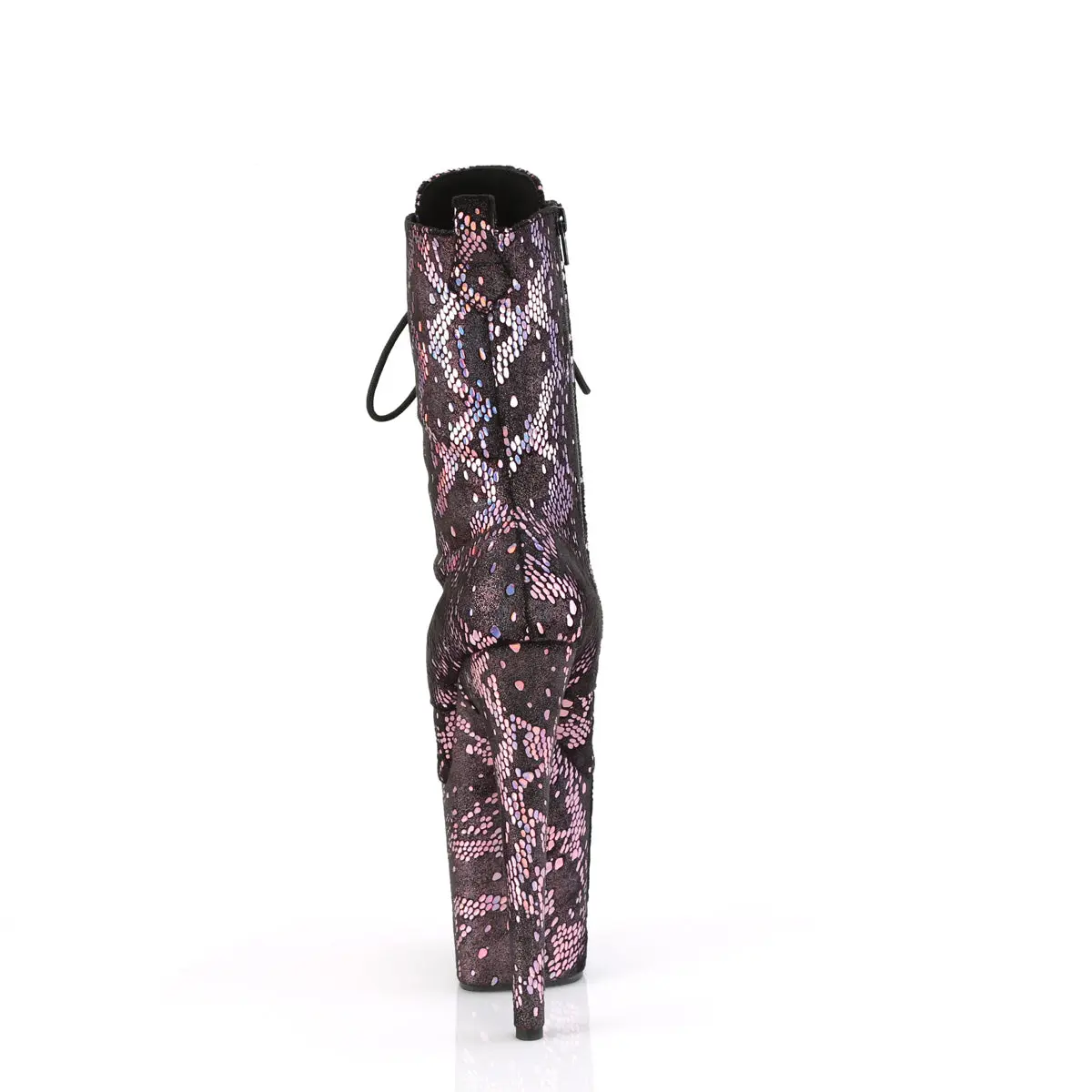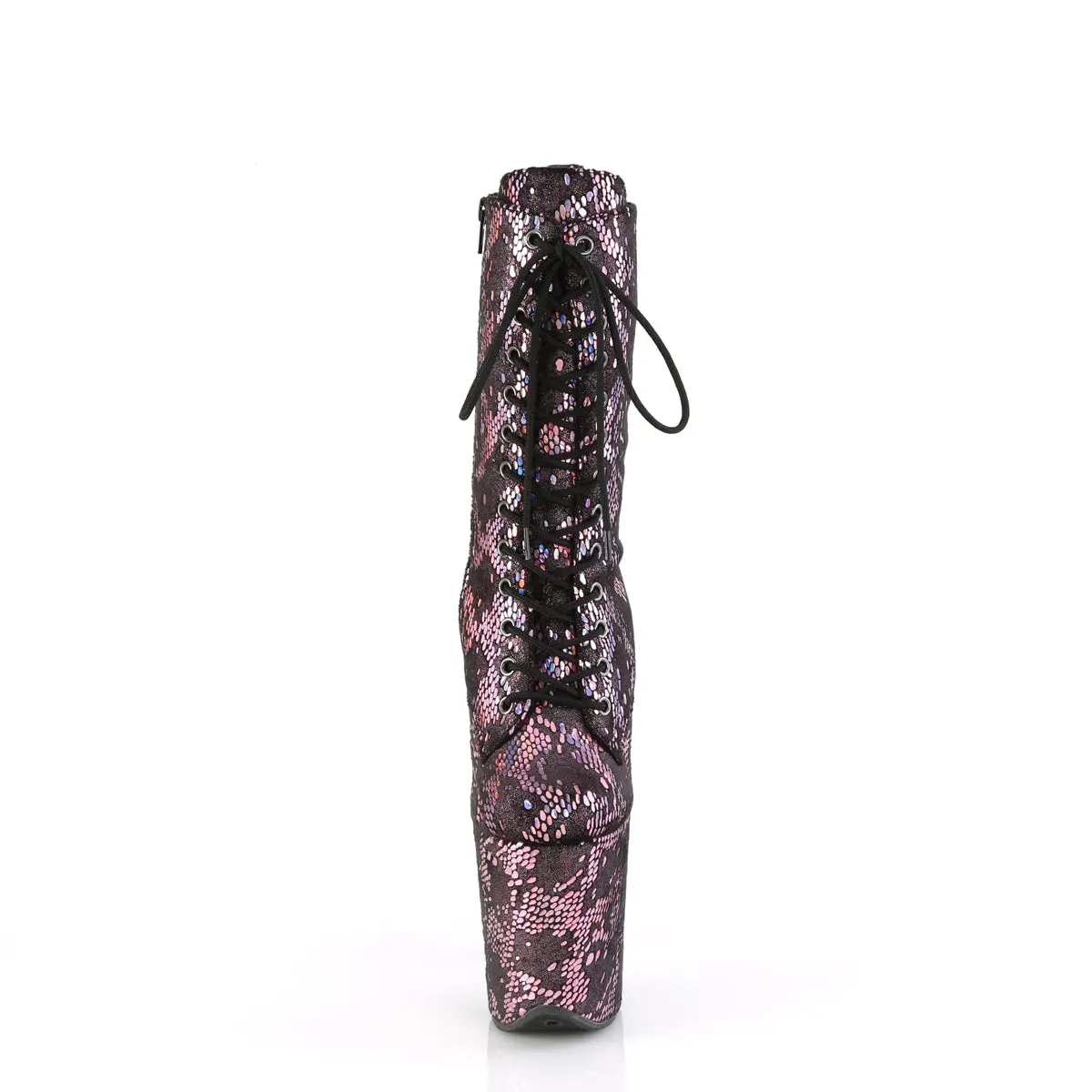 Meet the Flamingo-1040SPF, the ultimate ankle boot for those who dare to stand out. With its towering 8-inch heel and substantial 4-inch platform, this shoe commands attention. The baby pink hue adds a fun, flirty twist, while the lace-up front and fully wrapped matching platform provide an eye-catching detail. These boots are not just footwear; they're a statement in themselves, perfect for embodying your fierce and fabulous spirit.