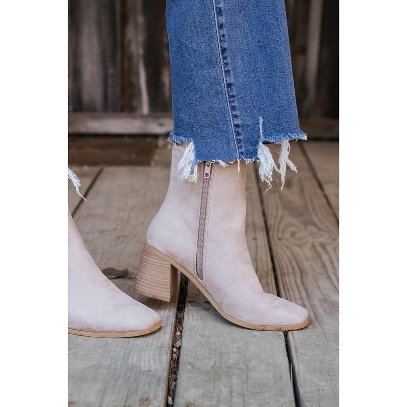 5. Beige Faux Suede Heeled Ankle Booties - FINAL SALE