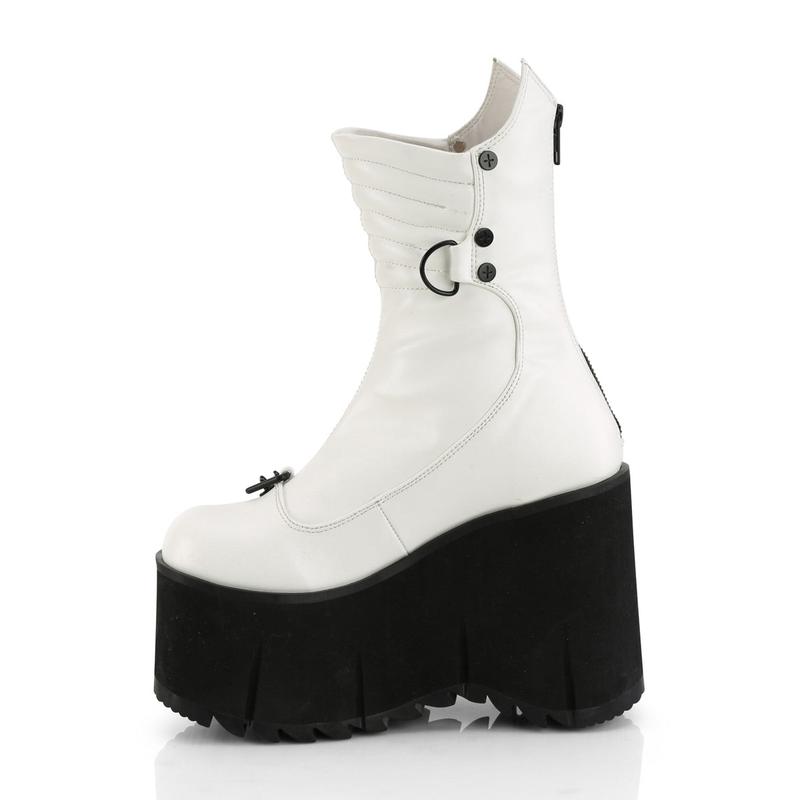 Demonia Kera-130 White Vegan Leather Ankle Boots