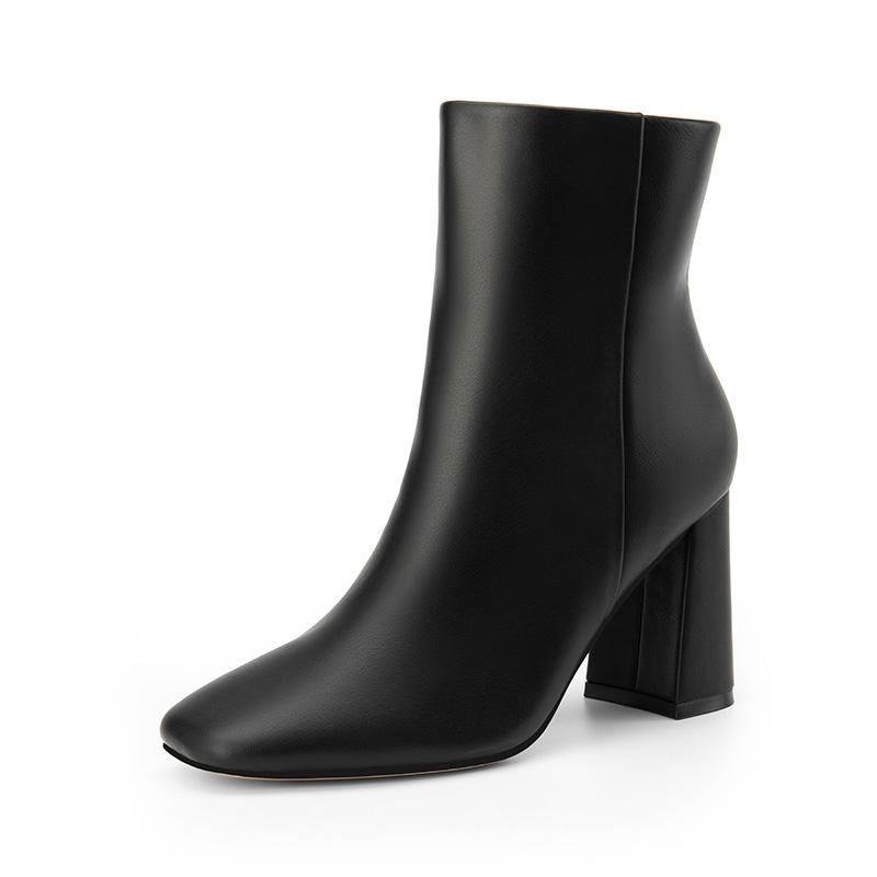 These elegant ankle boots for women let you showcase confidence effortlessly. Crafted with a soft upper and lining, they offer a comfortable wearing experience. The stylish square toe adds a touch of sophistication without losing that polished edge—classic yet modern, these boots fit into any occasion, whether for commuting, a date, or just a casual day out. With a 3.35-inch block heel, anti-slip outsole, and a side zipper design, they combine style and comfort perfectly.