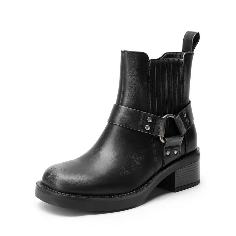 Dream Pairs Women's Moto-Inspired TPR Outsole Ankle Boots With Square Toe & Block Heel