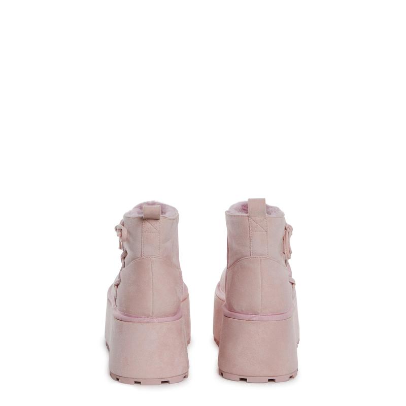 cuz you're living the dancing dream! These boots have a faux velour construction, a faux shearling lining, a lace up bow design on the sides, platform soles, and a slip on fit.