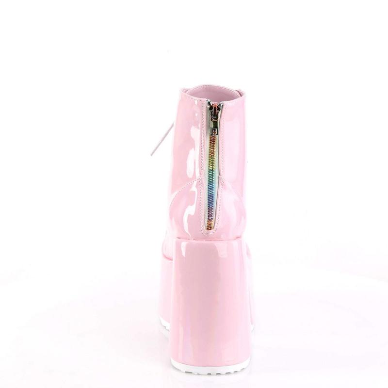 Demonia Camel-203 Baby Pink Hologram Ankle Boots