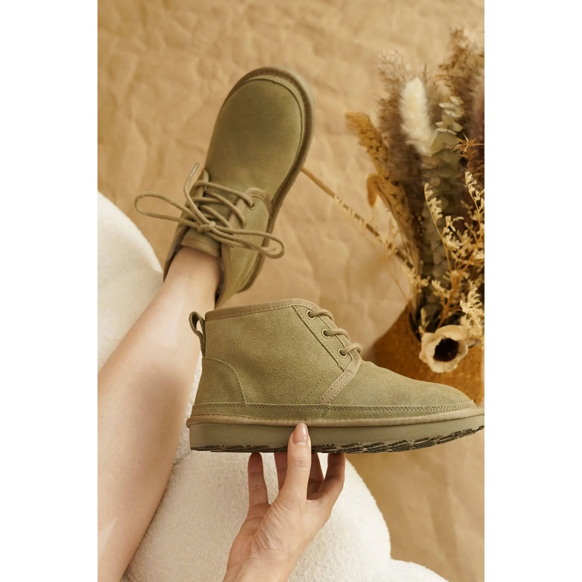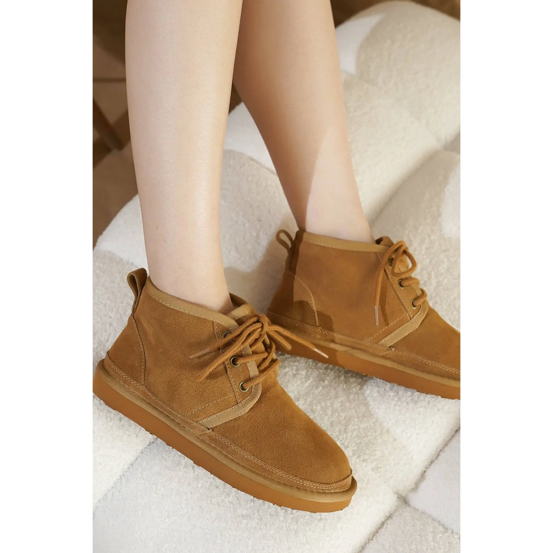 I freaking love these boots. They feel as high quality as my uggs but the fit is better, they are easier to get on and off, and this kind of boot is switching it up a little from the typical knock off ugg boot. They are adorable when you wear them w/ scrunchy socks! Any shoe by this brand: 🔥IMO.