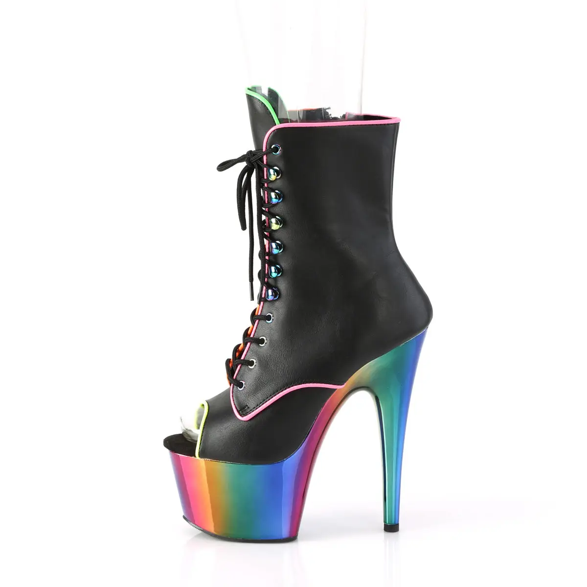 Not quite as heavily chromed color as picture depicts, but they definitely have striated colors on the platform and the detail around the boots do come through under black light. They are so fun to wear! My first pair of boots, so having to work with breaking in the leather, but surprisingly, not having any issues with rubbing. Very comfortable!