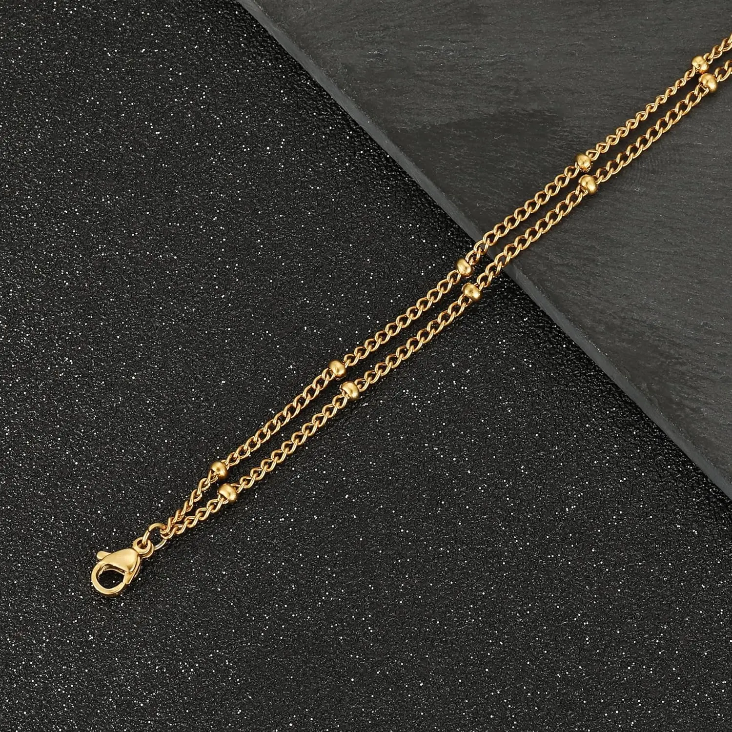 Ankle Bracelets 18K Stainless Steel Layered Stackable Anklets Beach for Women Men Adjustable