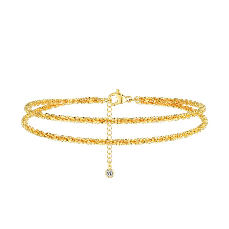 Triple-layered sterling silver cubic zircon anklet for women, glittering in the sunlight,is the perfect accessory for the summer, can better express your personality and highlight your beauty.