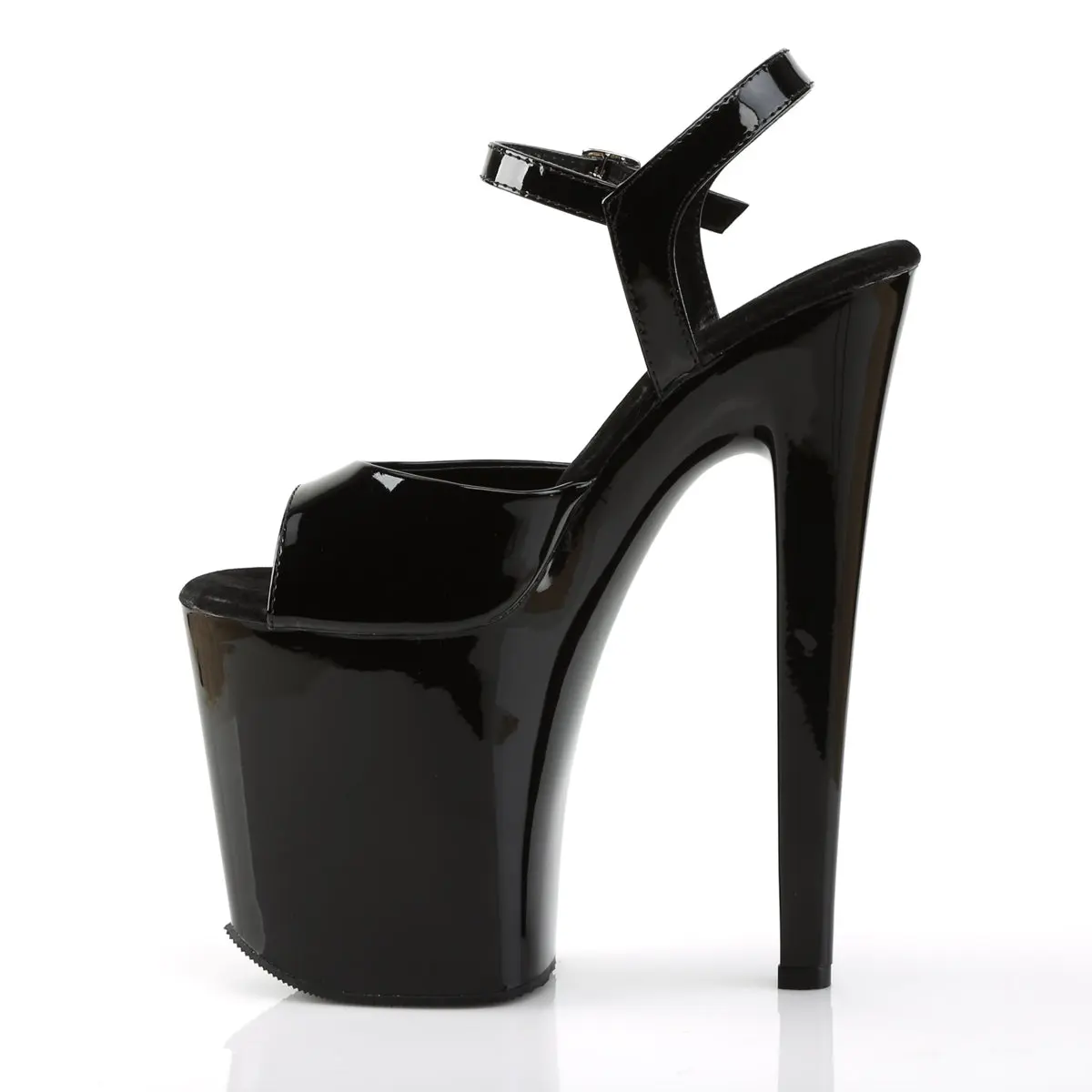 Take your style to new heights with the Xtreme-809 Ankle Strap Peep Toe Sandal. Featuring a striking 8-inch heel paired with a 4-inch chrome platform, this sandal is a standout choice for those looking to make an impact. The bold black finish and elegant peep toe design complement any ensemble, while the ankle strap provides a supportive touch for your outings.